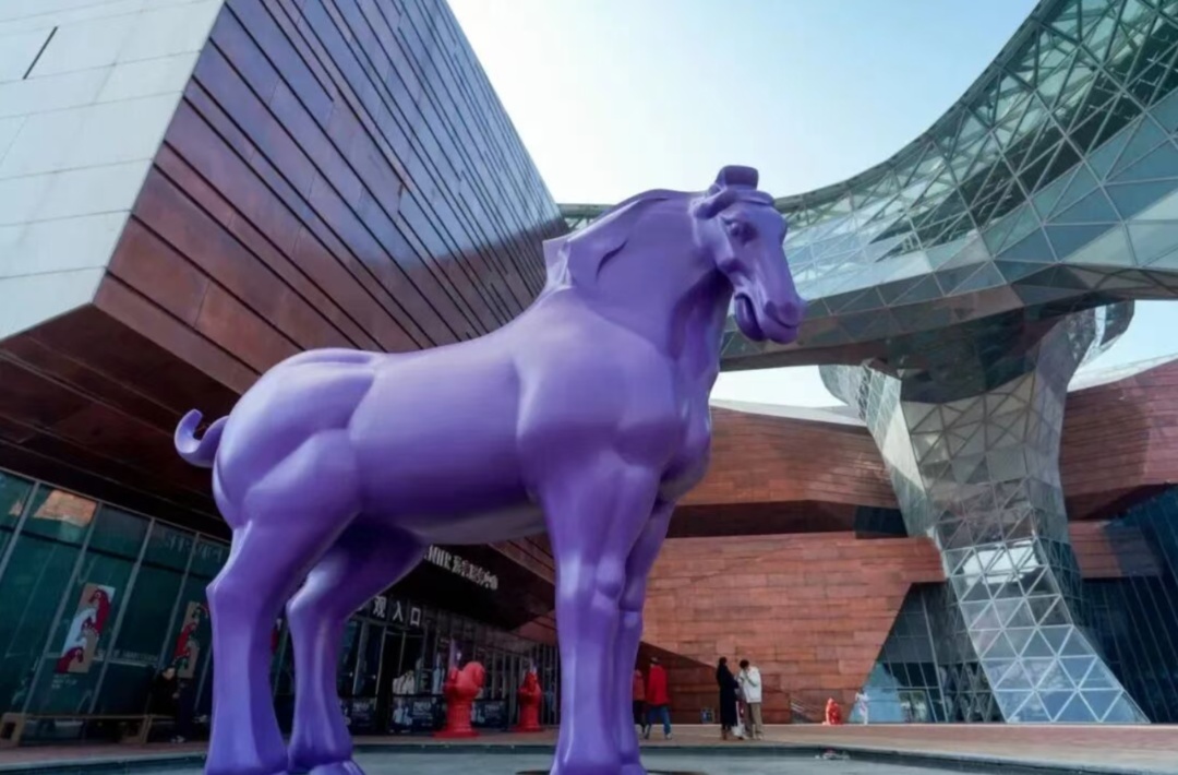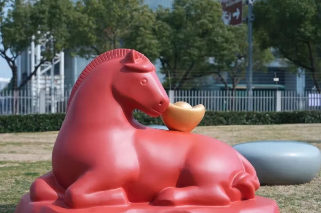 马年公共艺术展则为新春增添了一抹别样的色彩。以“万紫千红总是春”为主题,采用装置艺术的呈现形式,将传统非遗与当代艺术相融合。以三彩艺术为基底,结合公共艺术的创作理念,让千年中华马在当代焕发出全新的艺术生命力。主雕塑“紫气东来”和呆萌可爱的群马雕塑向观众传递着新春祝福。带着家人来参观的王先生笑着说:“今年是马年,这个展览很有节日氛围。这些马雕塑造型独特,既有传统的韵味,又有现代的艺术感,孩子特别喜欢,一直在旁边拍照留念。”