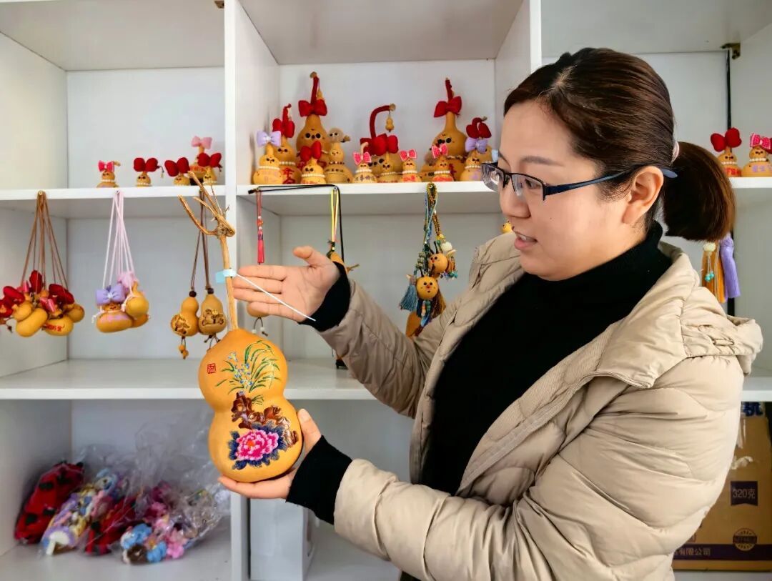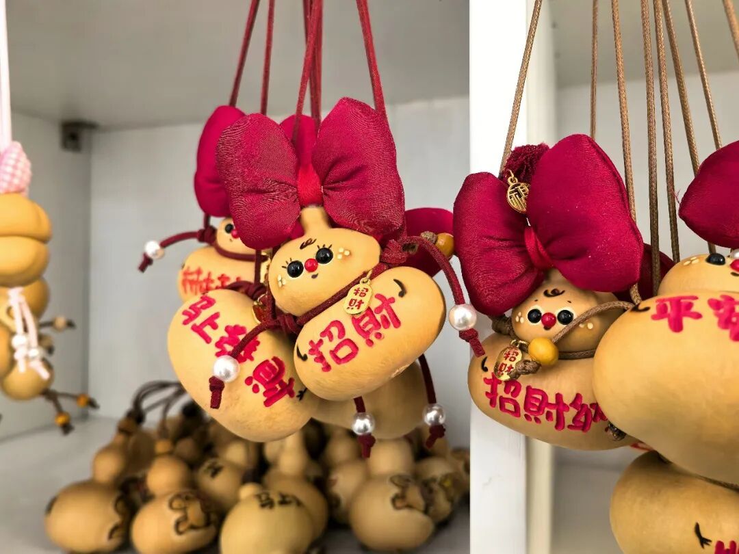 “小伙伴都回老家过年了,我这两天再整理一下,也要回山东了。”张亚军指着展示架上的葫芦工艺品说,“‘葫芦’谐音‘福禄’,相传西汉张骞出使西域归来,就在我的家乡开始种植,自古就是吉祥物。”