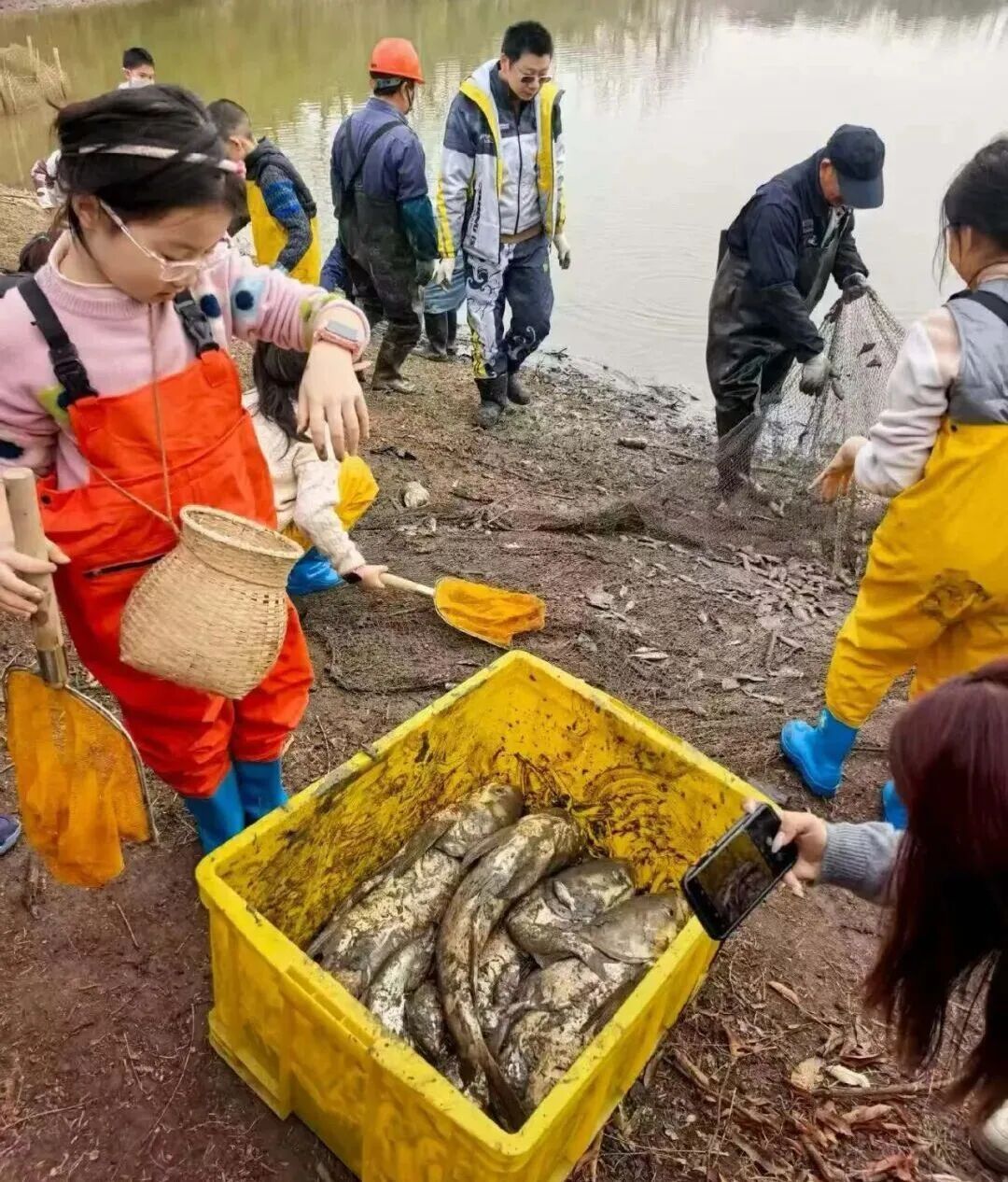 超刺激的起网抓鱼活动