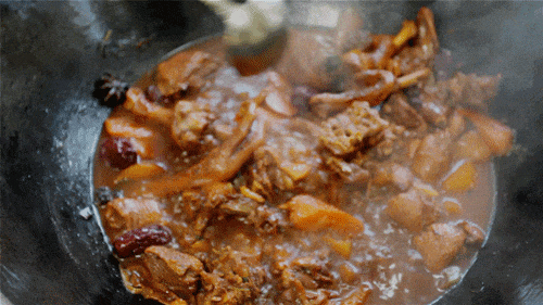 现场土灶铁锅炖大鹅