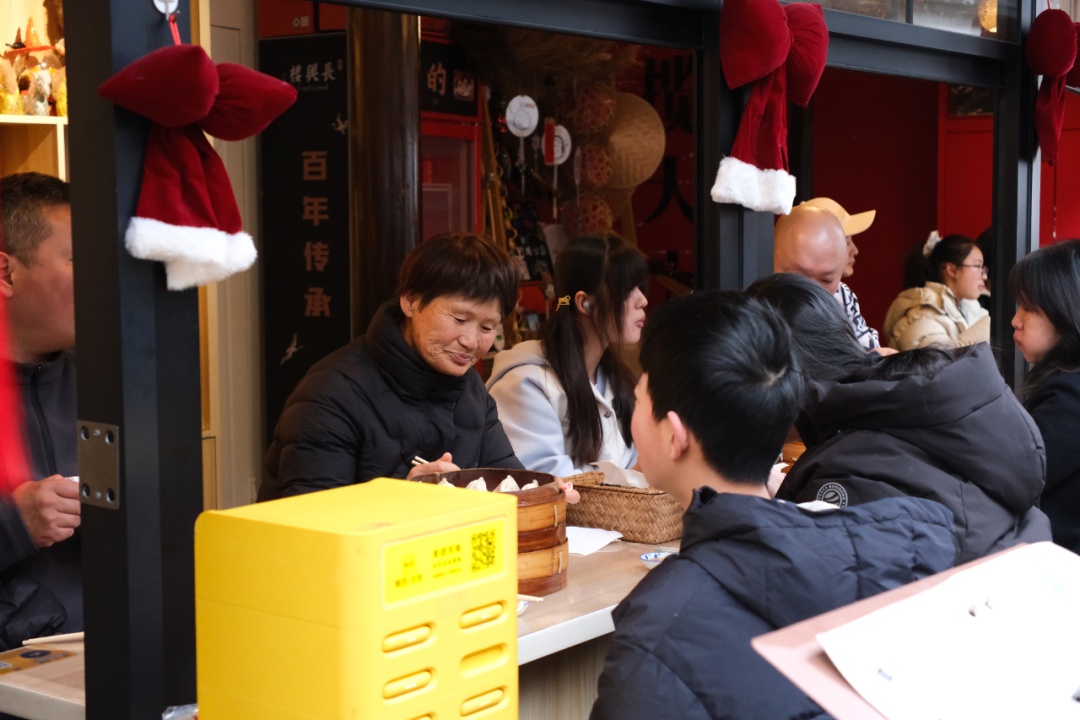 2月19日下午3点,记者在现场看到,南翔古镇张灯结彩,人流如织,年味十足。来自四面八方的游客在这里感受传统与现代交融的节日氛围:有的驻足与“南翔十八景”走马灯组合影;有的点上一份小笼包品尝非遗美味;还有的走进檀园,欣赏光阴流转中的古韵美景。