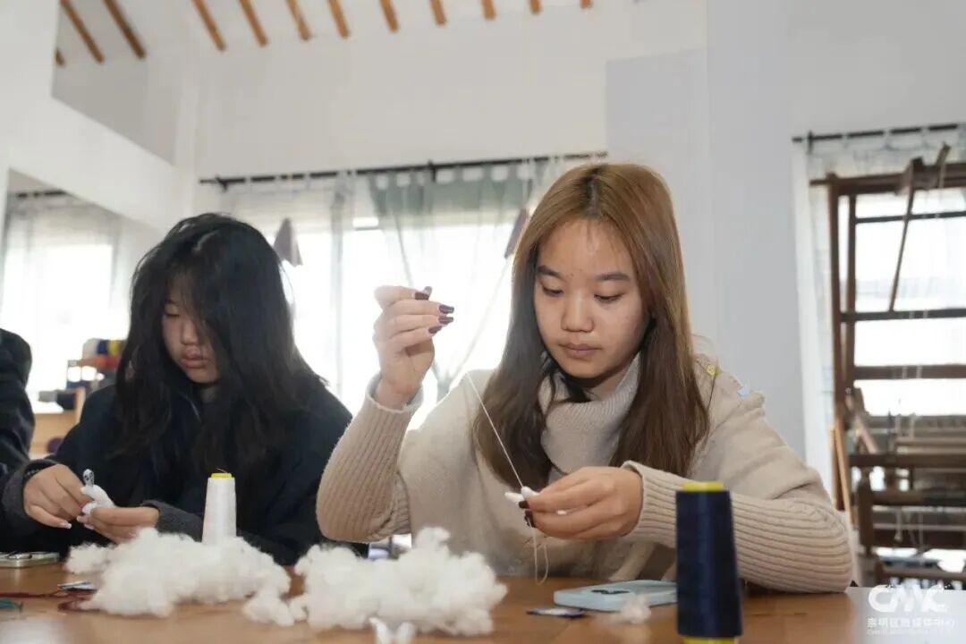 据了解,木棉花开创意工坊是一处集崇明土布纺织技艺展示、非遗项目体验、文创研发于一体的土布文化传承基地,工坊深耕传统土布文化多年,用创意设计让老手艺焕发新生。活动现场,除了特地赶来体验的散客,还有不少在附近民宿游玩的亲子家庭也齐上阵,共同体验土布制作的独特乐趣。