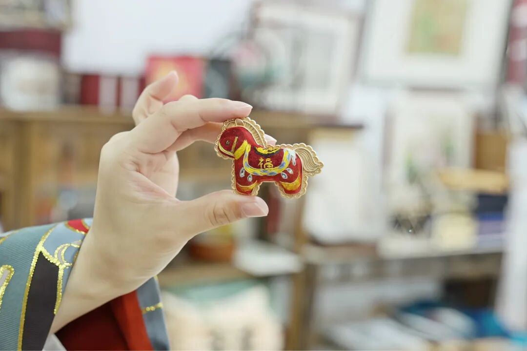 驾!驾!驾! 农历马年来啦 除了置办年货、张贴春联 一件别有趣味的“马”主题文创 正成为人们传递祝福的新选择 近日,嘉定出品的马年文创悄悄上新 来吧~跟随小嘉 感受这波“马到成功”的仪式感 赤马驮“袋” 苏绣针脚纳福来 一枚以“赤马驹驮福”为意象的苏绣胸针,将嘉定苏绣的细腻针法与华夏吉祥文化凝练于方寸之间。作品选用正红色丝线,以套针与晕针技法层叠绣制,模拟火焰流动的纹理,寓意马年红火奔腾。 小马形态圆润温驯,躬身驮负一只“福袋”,袋口以盘金绣勾勒,象征福气绵延。福袋虽小,借“袋”谐音“代”,寄托“代代有福”的深意。整体造型取“马驮宝袋”的传说典故,既是一件佩于衣襟的吉祥信物,也是一幅可随身携带的微型苏绣画。 “希望通过这枚胸针,将苏绣的细腻与生肖的吉祥融为一体。”嘉定区苏绣非物质文化遗产代表性传承人陈碧娴介绍,“马驮福袋,既是对新年的祝愿,也是对传统技艺的守护。一针一线里,藏着我们对‘锦绣前程’最朴素的期盼。” 苏绣非遗实践基地 洪德路115号 众芳党群中心501室 开放时间 周四至周二,9:30-17:00 (春节期间开放时间以实际为准) 涂金“嵌”福 压金丝牌寄疁城 此平安挂牌以实木为基底,循非遗压金丝嵌宝涂金古法制作。匠人在开好槽的木牌上细致涂抹金漆,手法匀控,确保金泽凝萃、温润亮泽。待金漆干透后,精磨修饬,去繁留简,融手作温度与非遗底蕴于一体。 牌面纹饰简约大气,寓意顺遂安康,既承载“疁城瑞气,银骥凌云”的地域文化意象,也寄托“前程似锦,一马当先”的马年祝福。 “涂金法讲究的是耐心与手感,每一笔金漆都承载着对美好生活的期许。”嘉定区非物质文化遗产项目压金丝嵌宝代表性传承人张超表示,“这块平安牌,既是马年的纪念,也是非遗技艺的延续。我希望它能让更多人看到传统工艺的温润与力量。” 清工坊 地址:双单路817弄17号 营业时间:10:00-16:00 咨询电话:邵老师 15140907766 嘉有好店 地址:西大街56号 营业时间:8:00-21:00 地址:永盛路2201号 营业时间:8:30-17:30 咨询电话:唐馆长 13681769451 (春节期间不开放) 铃铛“响”福 钩织红马报新春 这件小马摆件是钩织爱好者汪懿纯手工编织完成的,针脚细密紧实,造型立体饱满,线条圆润可爱。主体采用高饱和度红色毛线,鬃毛、马尾与蹄部以黑色点缀,口鼻处为白色,经典配色让造型更具辨识度。 马身装饰丰富。脖颈系宝蓝色织带,配金色链条与小铃铛,寓意“一鸣惊人”“岁岁平安”;背部的鞍垫采用渐变配色,边缘织有金色线迹,增添几分贵气。整体神态憨态可掬,既可作为新春摆件,也可通过背部挂环作钥匙扣、包挂使用,寄托“鸿运当头”“一马当先”的美好祝愿。 “现在会钩针技艺的人越来越少,我做完一匹小马就会发朋友圈,希望让更多人了解这门手艺。”手工钩织爱好者汪懿说,“愿这匹小马载着满满福气,稳稳走进大家的心里。” 咨询电话 13818262606 陶马踏香风 Horse连连 值此马年,高级陶瓷工艺师、外冈镇马门陶艺村发起人高艺峰设计并推出了“Horse连连”马年陶瓷香插礼盒,融合陶艺匠心与传统香文化。 礼盒中的马型陶瓷摆件以极简折纸造型呈现,几何线条利落,釉面温润细腻,有白、金两款配色。“Horse连连”,谐音“好事连连”,与“马到成功”“立马如愿”等祝福呼应,也巧妙串联起马年以及马门陶艺村的地名和文化。作品兼具装饰性与实用性,更是扎根于马门村的艺术家,以陶文化为媒介向外界传递的温暖心意。 地址 外钱公路456号 马门陶艺村MM咖啡 咨询电话 方老师15221623910(微信同号)