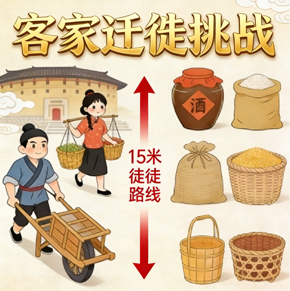 活动内容:还原客家迁徙场景,让游客沉浸式体验客家迁徙中的协作与坚韧。