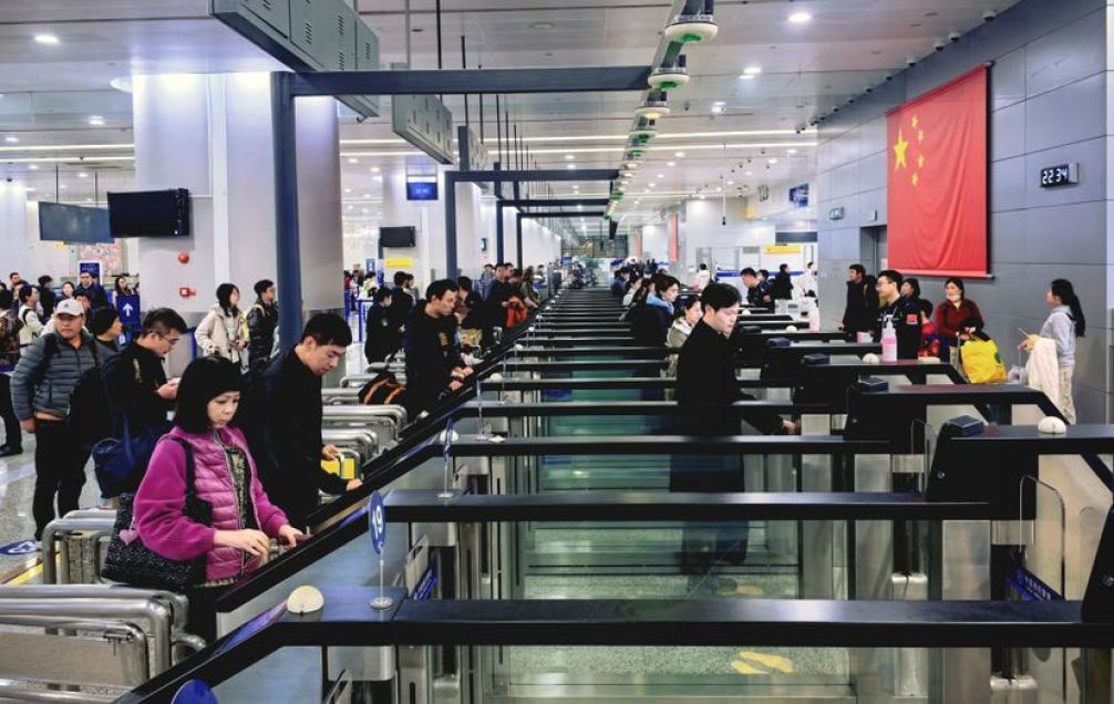 在上海边检民警的高效保障下,口岸秩序井然,充满新春活力。