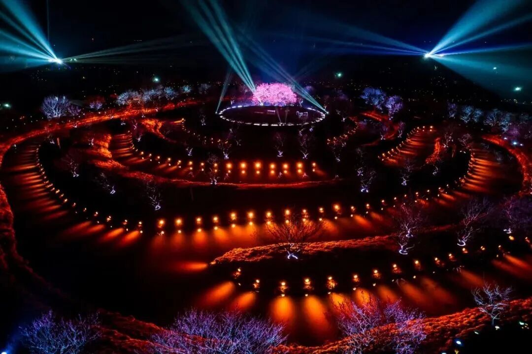 “寻常一样窗前月,才有梅花便不同。”月夜赏梅,不再是独属于古人的偏爱。待到暮色降临,灯光次第亮起,与白日的清雅梅园不同,瞬间变身梦幻秘境。