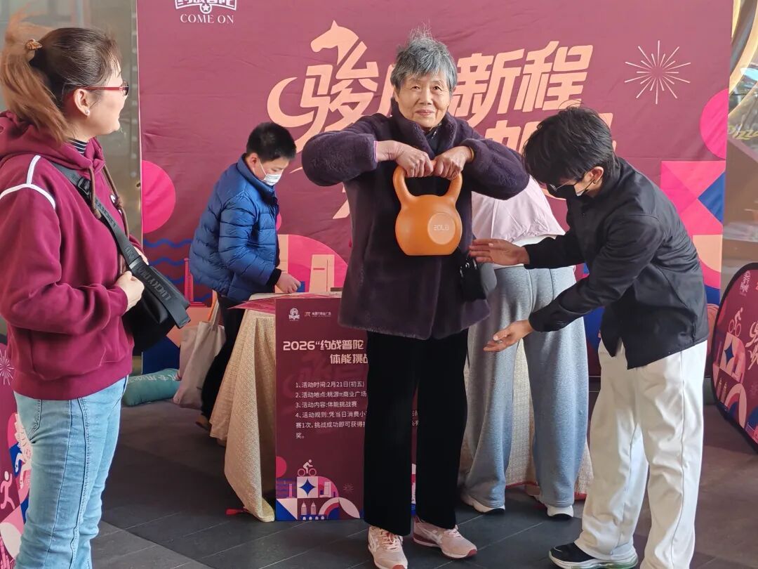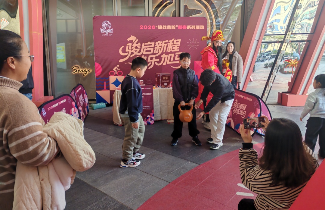 “加油!再举一下!”正月初五,普陀区桃源π商业广场主入口传来阵阵呐喊与助威声,与商场内喜庆的新春装饰相映成趣。现场,2026“约战普陀 大力出奇迹”体能挑战赛火热开赛,不少市民游客在体能比拼中开启马年“福气满满”的新征程。此次活动是“约战普陀 快乐加马”新春系列活动的重要组成部分,结合初五迎财神的传统节点,传递“强体魄、贺新春”的健康理念。