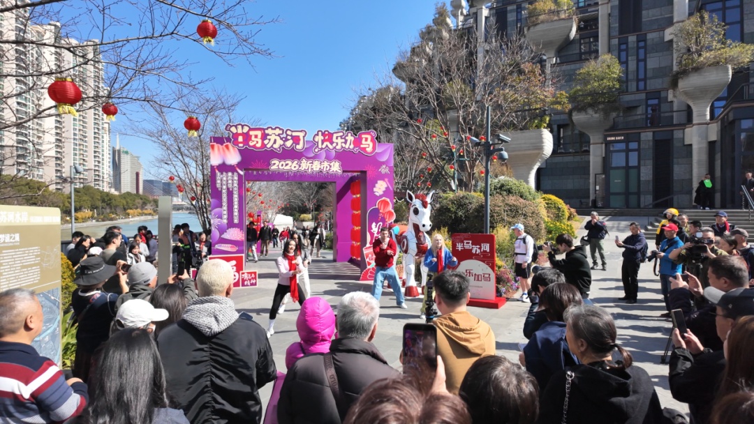 来自吉林的马语聪女士觉得此次出行别有深意。“我属马,又姓马,今年是我的幸运年。”她笑着表示,自己带着两个孩子来上海旅游,根据攻略寻至苏州河畔,意外邂逅新春市集与外国友人表演,可谓惊喜连连。