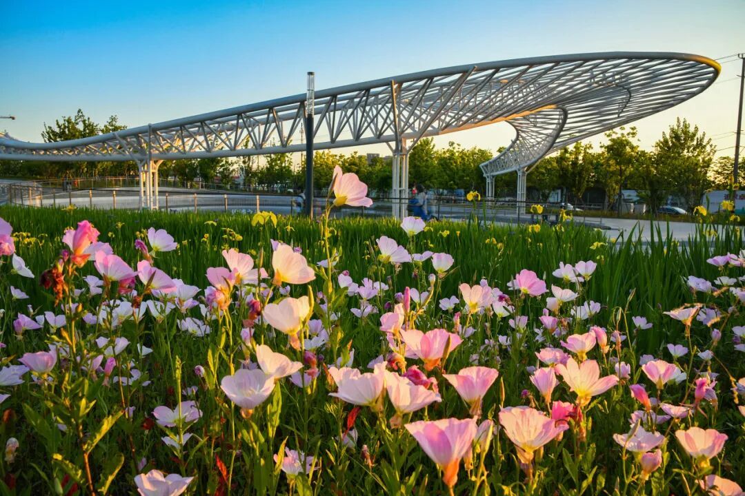 园内绿树成荫,蜿蜒的步道与流线型的建筑景观相映成趣,营造出宁静舒适的城市环境,不仅引导游客深入探索,其本身也构成了一道优美的风景线。