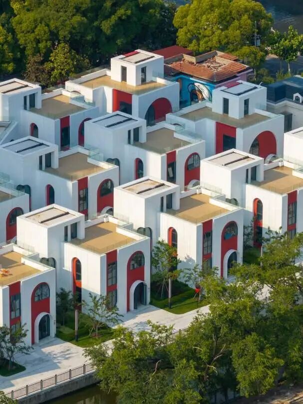 最亮眼的当数方寸山当代艺术中心,它由雕塑家余积勇工作室旧址改造而来,在这里随手一拍,都能拍出满满的艺术感。