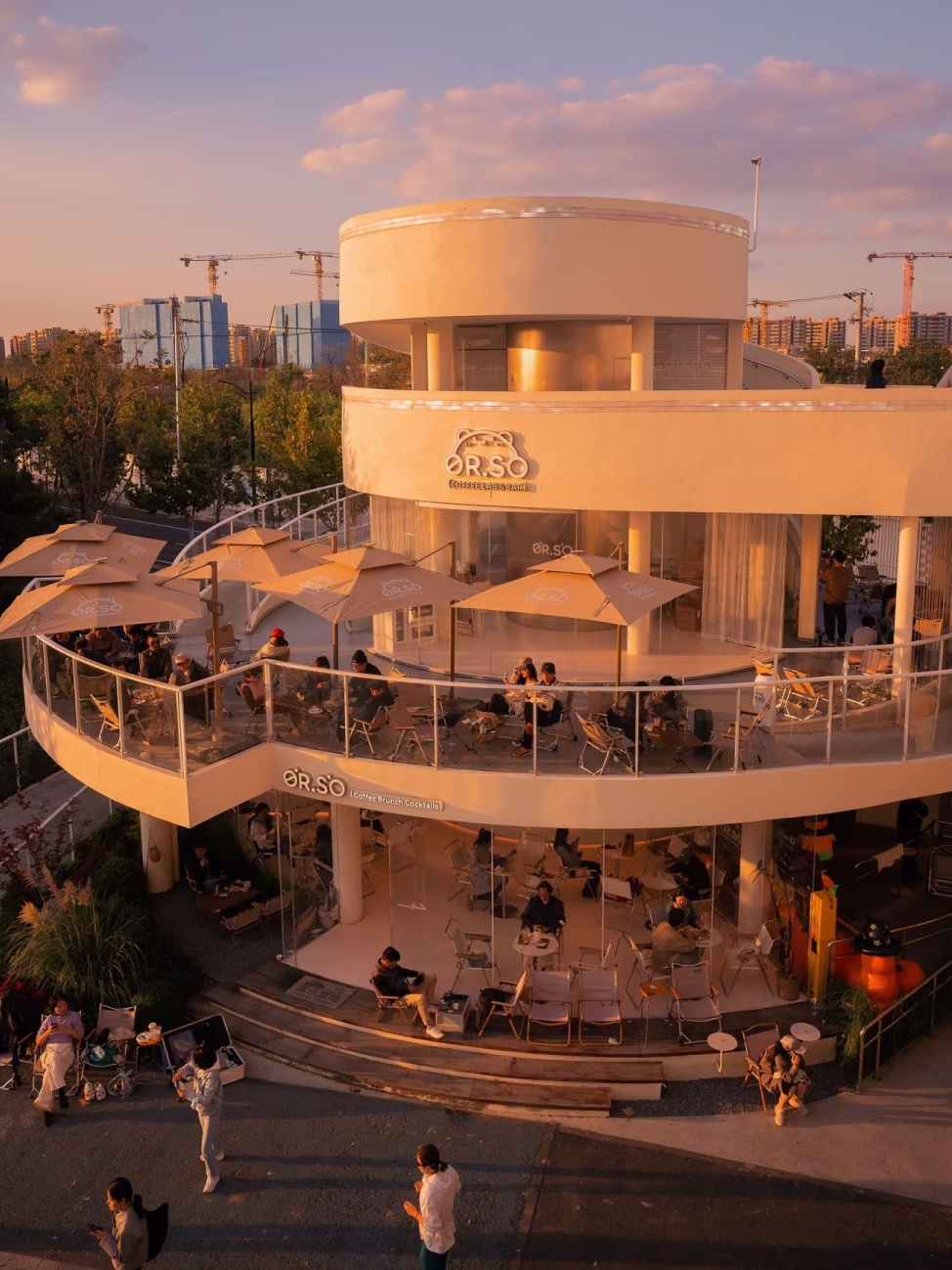 奶白色的螺旋建筑,搭配极简装修与绿植造景,OR.SO Coffee Lab & Bar 就像一块精心雕琢的奶油蛋糕,坐落在苏州河畔,治愈感满分。