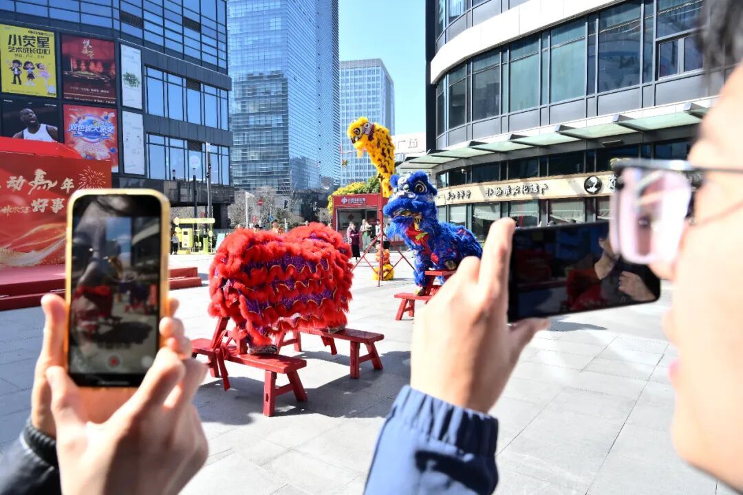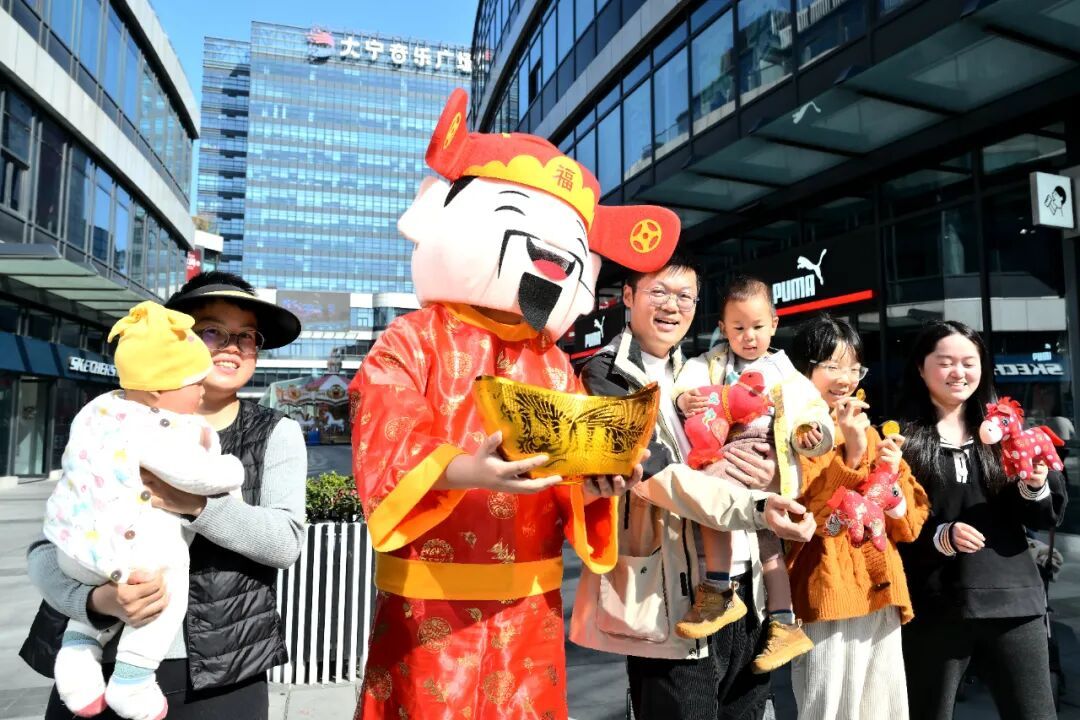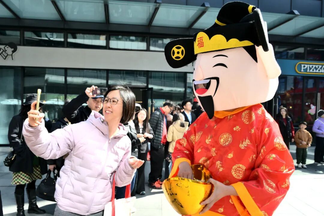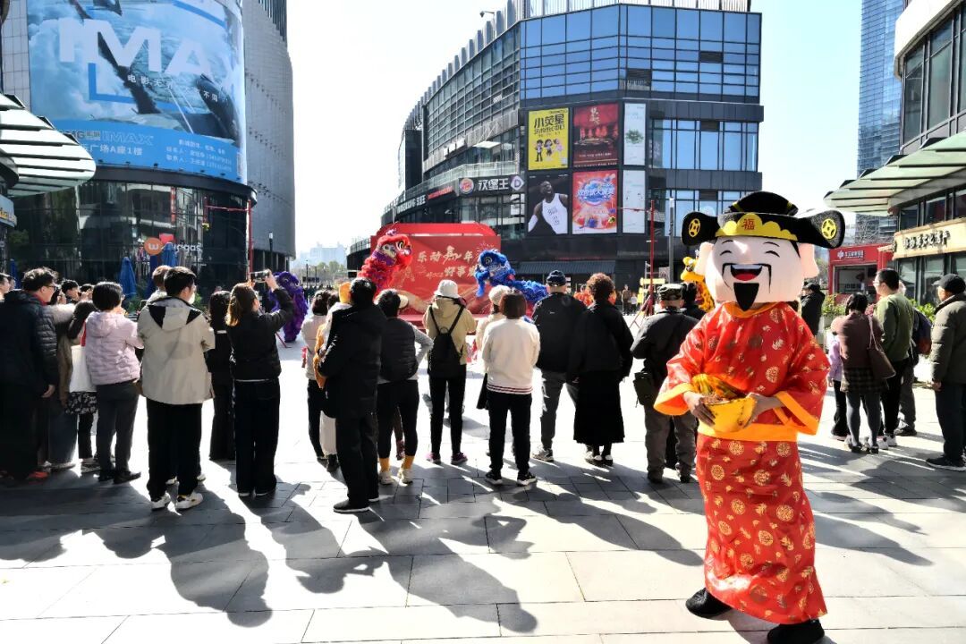 当天上午,随着一阵激昂的鼓点,“祥狮献瑞迎财神”活动准时拉开帷幕。“财神”手捧金元宝与威风凛凛的瑞狮踩着锣鼓节奏而来,为大家送上满满的新年祝福。
