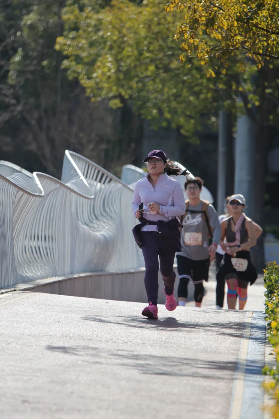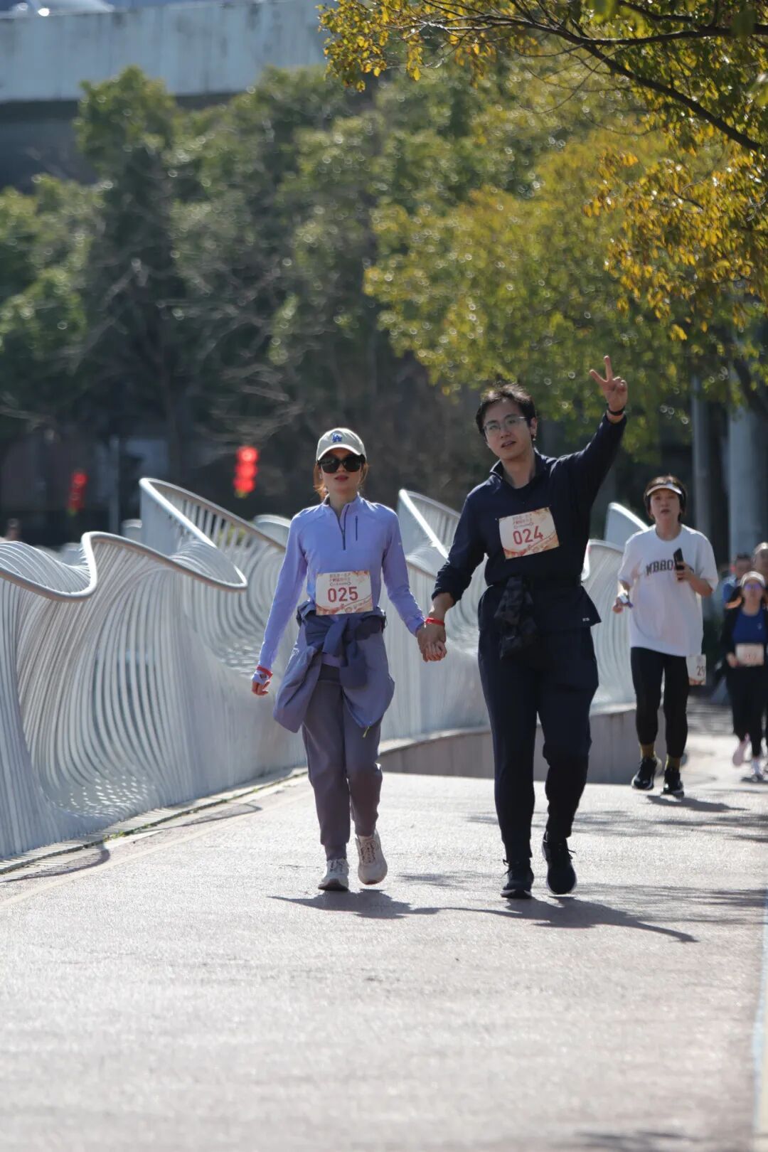 行进途中,苏州河绿道碧波荡漾的景色与两岸的绿植相映成趣,微风拂过,带来阵阵草木清香;长宁生态绿道草木种类丰富,步道整洁平缓,选手们穿行其中,仿佛置身天然氧吧,尽情呼吸着新鲜空气;延安西路立交旁,一群气势恢宏的骏马奔腾雕像映入眼帘,成为本次活动的热门打卡地。雕像栩栩如生,骏马昂首挺胸、奋力奔腾,并搭配了年味十足的红色装饰。完美契合了“健马征途”的活动主题,也象征着马年的昂扬斗志与蓬勃生机。不少选手驻足,卸下徒步的疲惫,与骏马雕像合影留念,有的摆出奔跑的姿势,有的比出“胜利”的手势,用镜头定格下这一特殊时刻,记录下马年里这场意义非凡的徒步之旅,也定格下自己奋勇前行的模样。