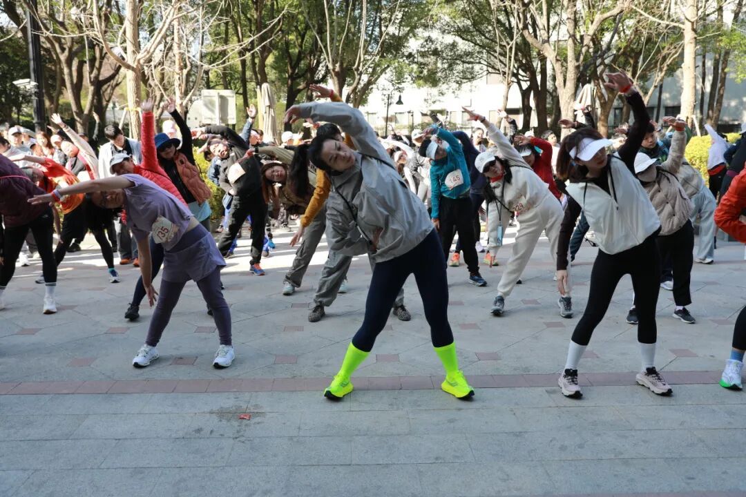 清晨,春秋国际大厦广场已热闹非凡,来自各行各业的徒步选手们陆续齐聚于此,脸上洋溢着喜悦与期待,大家相互送上新春的问候、合影留念,还有家庭组团参与,现场氛围热烈而温馨。