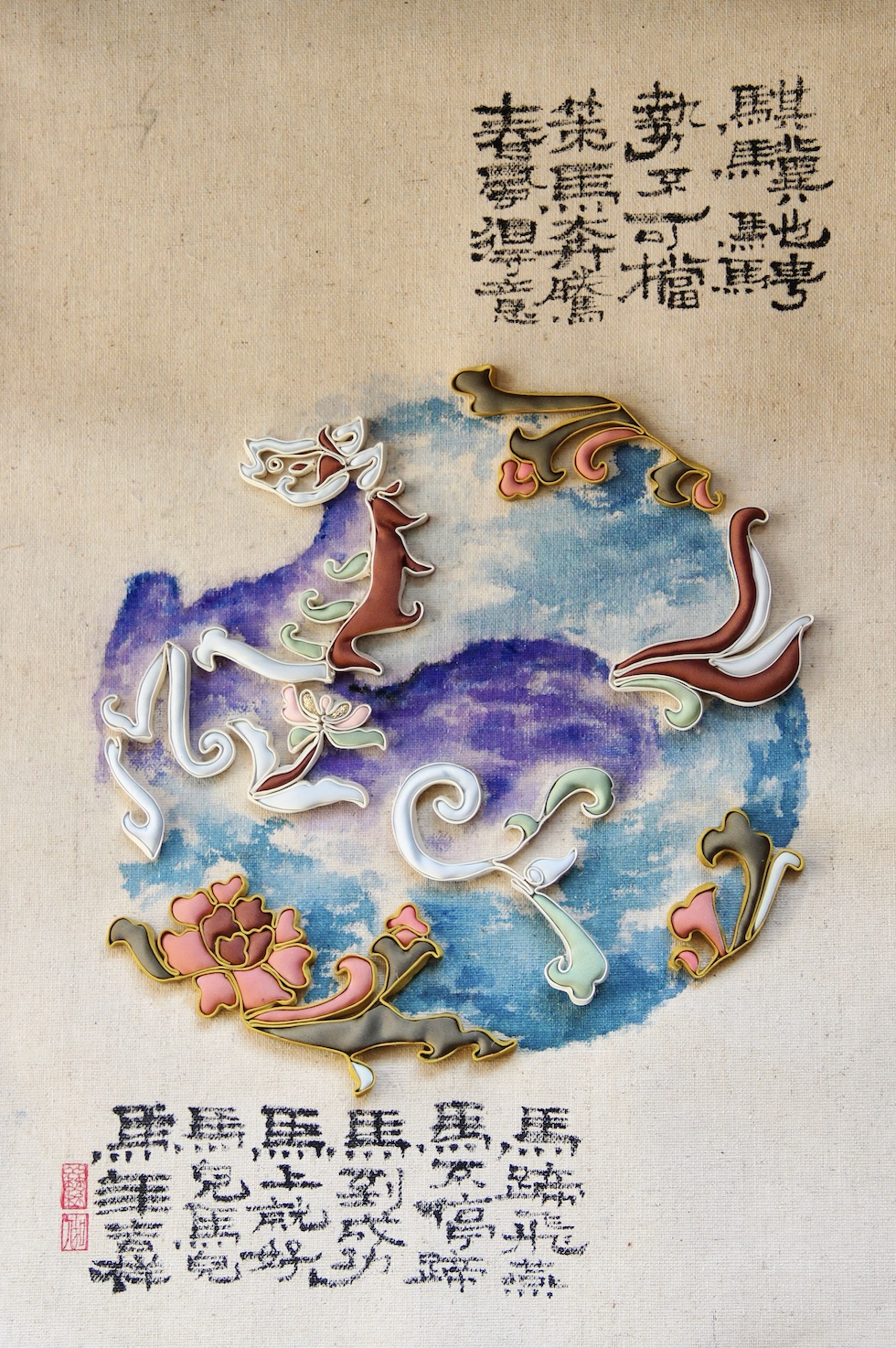 盘扣制成的马形装饰画,