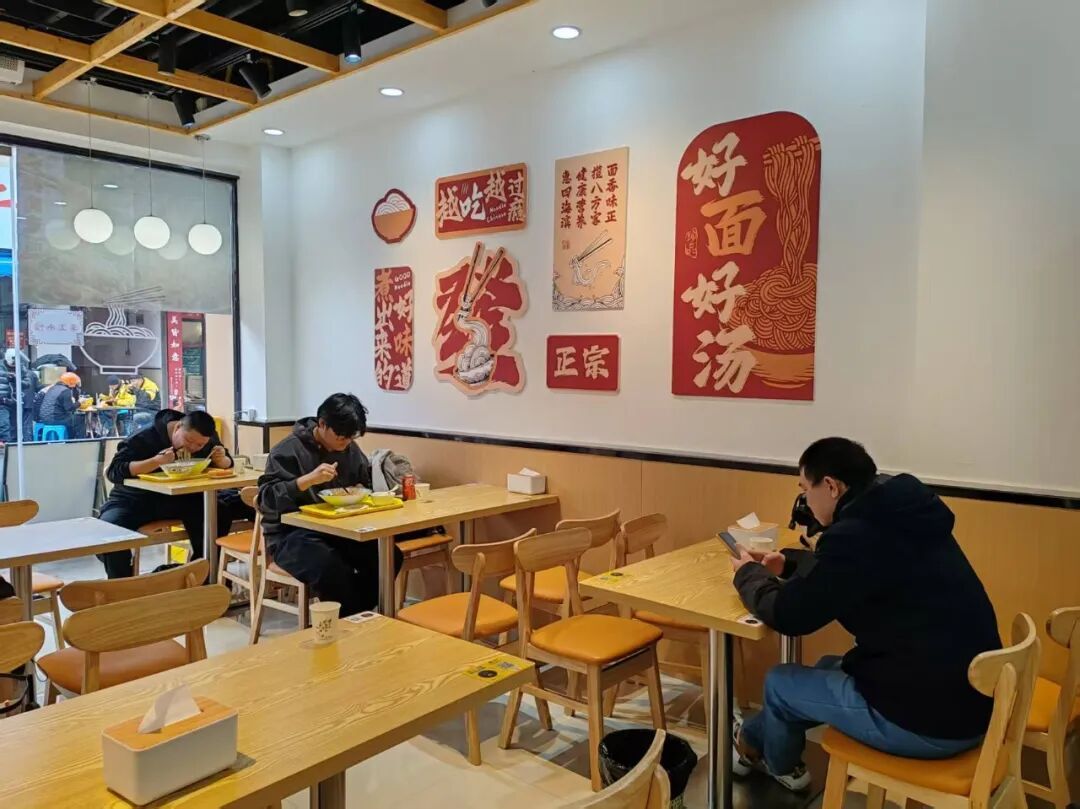 大年初六,不少人陆续踏上了回沪的归途。一大早,牌楼休闲广场的黑猫面馆就亮起了灯,90后青年毛建伟正忙着扫地擦桌,做完清洁后,又来到后厨备餐。 作为黑猫面馆的老板,这位直爽的东北汉子,选择在初六便恢复营业,只为“有人吃面,我就做”。 90后的“黑猫”情结 店主毛建伟曾在日本学习生活11年,2020年回国后,面对众多选择,毛建伟最终将目光投向了最具烟火气、也最需要耐心的小微餐饮赛道。 他没有选择更“轻快”的奶茶店模式,而是转身投入了需要慢火、热锅与坚持的面食领域。“天冷的时候,人最需要的还是一碗真正暖身又暖心的东西。”他这样解释自己的选择。 为了找到理想的店铺位置,他花了一个月时间,走遍闵行的大小社区,最终选择落在古美。这里不仅有着浓厚的居住氛围和人情味,也毗邻着多个创新园区与社区,正需要这样踏实、温暖的生活服务小店。 店名“黑猫”来自女友的提议,灵感源于童年记忆里的“黑猫警长”,象征聪明、可靠与守护,也寄托着他们想做好一碗社区小面、服务一方邻里的朴素初心。 2025年12月,经过一番筹备,黑猫面馆正式亮灯迎客。这盏灯亮起的,不仅是一家小店,更是一份属于许多奋斗者的温暖光晕。 推门进去,原木色的桌椅整齐明亮,墙上那句“好面好汤”下方,三两桌客人正低头吃得专注。一位男生刚放下碗,边擦嘴边说:“真可以,下次还来。”——而他面前的碗里,汤汁几乎见底。这样的“光盘”,在这家开业不久的小店里并不少见。浓郁的汤底与实在的浇头,成为许多食客的暖心首选。 传统方桌、一字型的吧台座位适合一人食或简餐小聚。尽管风格简约,但明厨亮灶、整洁有序的环境,仍能看出店主对餐饮细节的执着。不少附近居民和白领已把这里当作日常食堂,中午、晚上来吃碗面,亲切得像推开邻居家的门。 现炒浇头、人均不到20元 菜单清晰简洁:拌面、汤面、小吃,单价多在20元以下。招牌“香辣肉沫浇头”等每日现炒,咸香微辣,带着鲜明的锅气。每碗约4两的面条,分量十足,饭量大的食客不用加面也能吃得饱。 “浇头一定要新鲜现炒,隔夜了风味就散了。”毛建伟说这话时,后厨正传来翻炒的声响。除了肉沫,辣子鸡丁、香辣肥肠等浇头也颇受欢迎,灵魂都在那一勺刚出锅的浇头上。浇头里的酱料也是毛建伟自己改良的,“酱料原汁原味,大家才爱吃。” 汤底则是大骨熬制的浓汤,经历8个多小时的熬制,味香鲜美,包裹着根根分明的面条,每一口都是幸福感。吃完面,再嗦上一口汤,整个人都暖和起来了。 此外,现烤的淀粉肠刷上甜辣酱,外脆内软,是许多年轻人重温童年滋味的选择。 “之后还想尝试更多砂锅类,比如土豆粉这种,”毛建伟一边收拾碗筷一边说,“想多做点让人从身到心都暖和起来的东西。” 或许,这就是社区小店最动人的样子,一口热锅、一把好料、一颗愿意踏踏实实做好一碗面的心。每一个吃完小面的人,推门再出发时,身上和心里都多了几分暖意。 黑猫面馆 地址:闵行区古美路街道牌楼休闲广场1—125室,距地铁12号线虹梅路2号口步行470米 营业时间:10:00—22:00