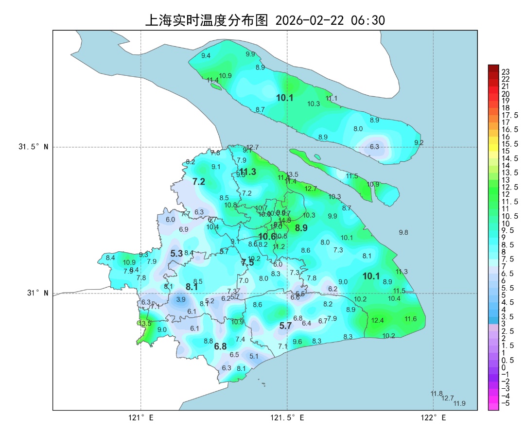 今日天气:今天中午以前依旧晴暖,早间就不冷,全市气温起步有5-11度,徐家汇站为10.6度。白天阳光相伴,预计最高气温可以达到22度,相对湿度80%~30%,与昨日体感类似。中午起受冷空气影响,气温略有下降,风力加大,北到西北风4-5级阵风6级,沿江沿海地区阵风6~7级,晚归也会冷一些,出门游玩记得带件防风外套,同时注意用火用电安全。 另外,受到北方沙尘输送的影响,今天下午到夜间本市有浮尘天气。