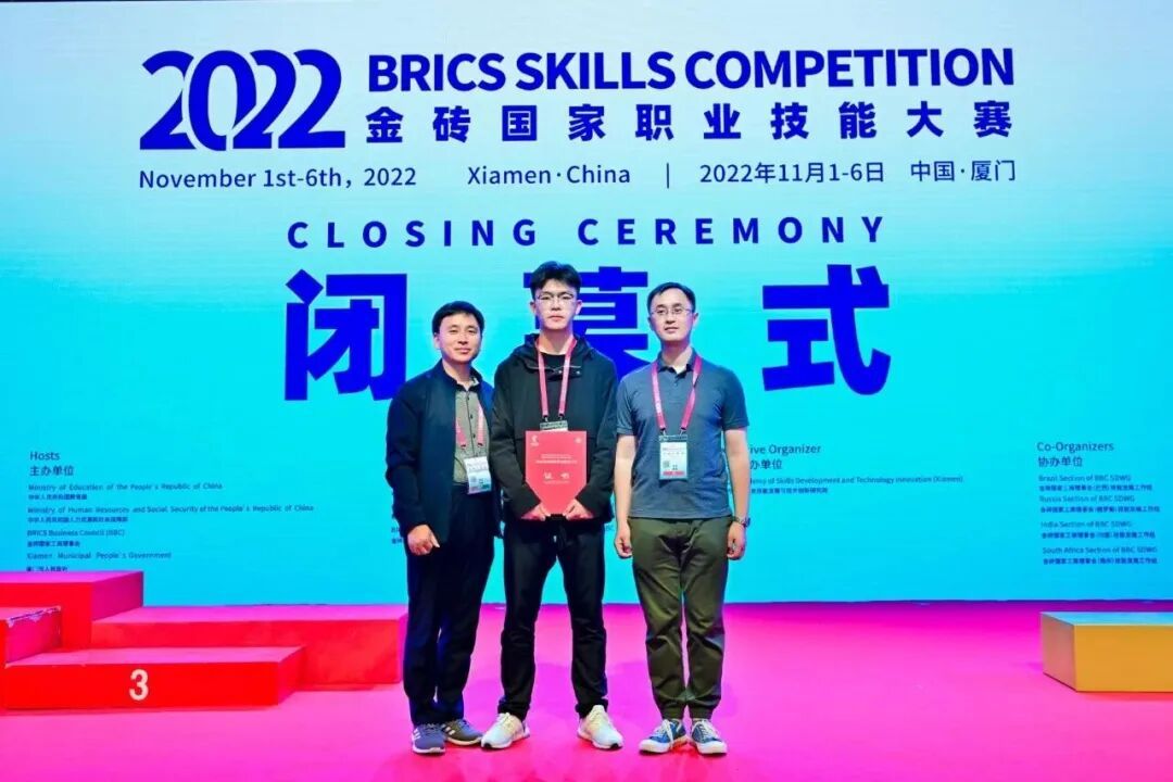 带着付磊的嘱托和学校的期望,许斌斌在老师陪同下奔波到外地工厂反复练习。最终,他不仅站上了国际赛场,更捧回了一座国际三等奖。