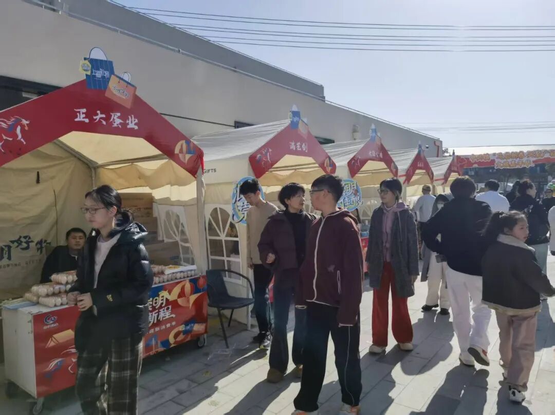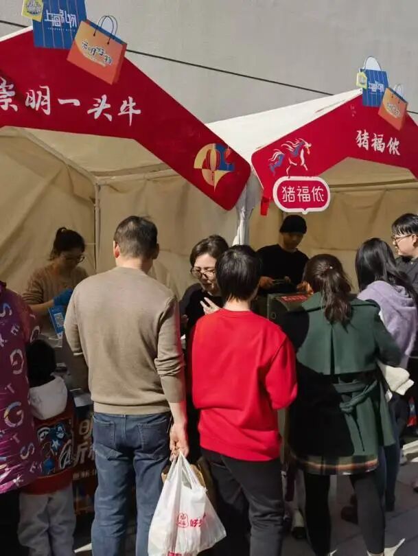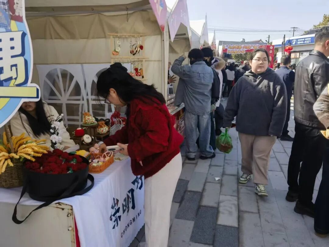 走进广福里,30多个特色摊位整齐排列,宛如一条“年味长廊”。崇明好物区域惊喜连连,非遗文创、精品农产品、特色手作应有尽有,不少游客直呼“逛不够,根本逛不够!”