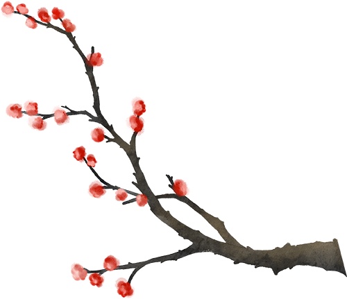 那红色的,是春日里难得的惊喜。花瓣上娇艳的绯红,犹如美人颊上的胭脂,为素雅的水墨画卷平添一抹亮色。红色的梅花与悬挂的灯笼、窗上的雕花共同构成一幅生动的年节图景。