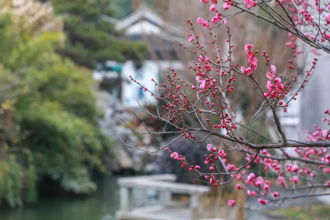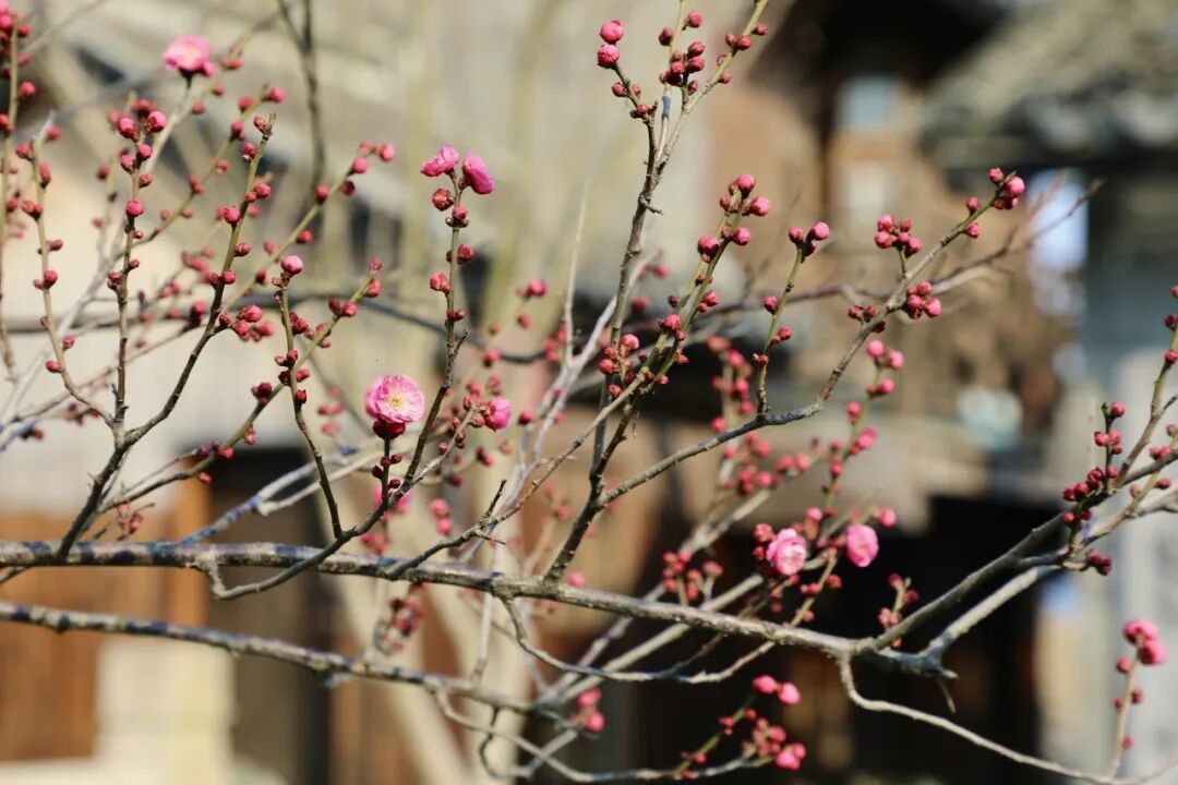 “檐角数枝破寒来,粉黄分映旧楼台”。这几日,若有心走过青溪老街的石拱桥,总会被一缕清冽的甜香牵住脚步。不必张望,那定是散落在粉墙黛瓦间的梅,听见了春的讯息,正用一树明黄、一树绯红,悄然温暖着古镇的初春。