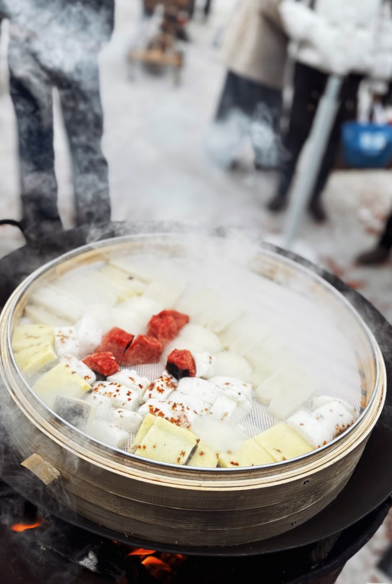 逛吃之间,舌尖先一步感受团圆滋味。嘉定马门村年糕摊位蒸腾着袅袅热气,软糯里都包裹着江南水土的温润与年味。