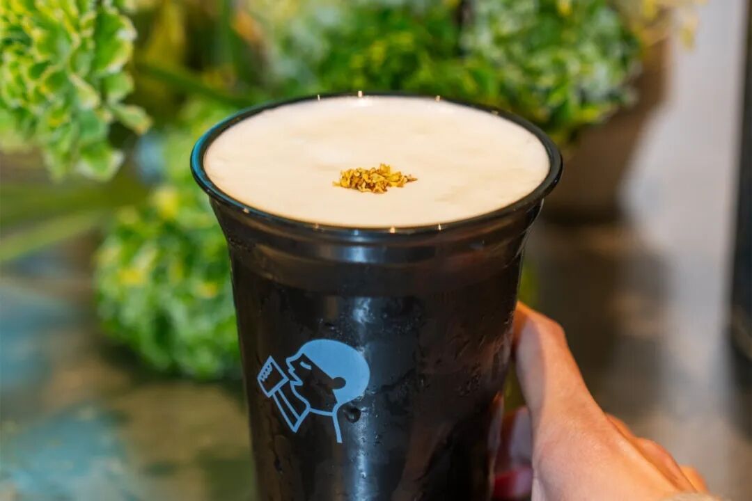 “岩兰·崇明米酿”融合上海在地灵感,选取传统手工工艺酿制的崇明米酿,搭配皇冠梨每日现制米酿梨汁,以清爽柔和的口感烘托出岩兰乌龙入口花果香高扬、鲜爽甘醇的独特茶感。
