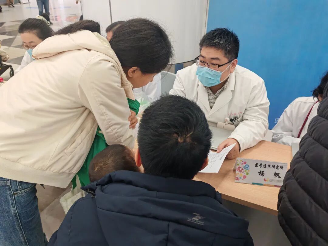 “来,宝宝别怕,让我看看你的小手。”在义诊区,多位专家组成的“诊疗矩阵”格外引人注目。与以往单一的专家咨询不同,此次由院内多个学科顶尖专家,与基地的遗传咨询师协同“会诊”,在现场为预约及前来咨询的家庭提供“一站式”服务。