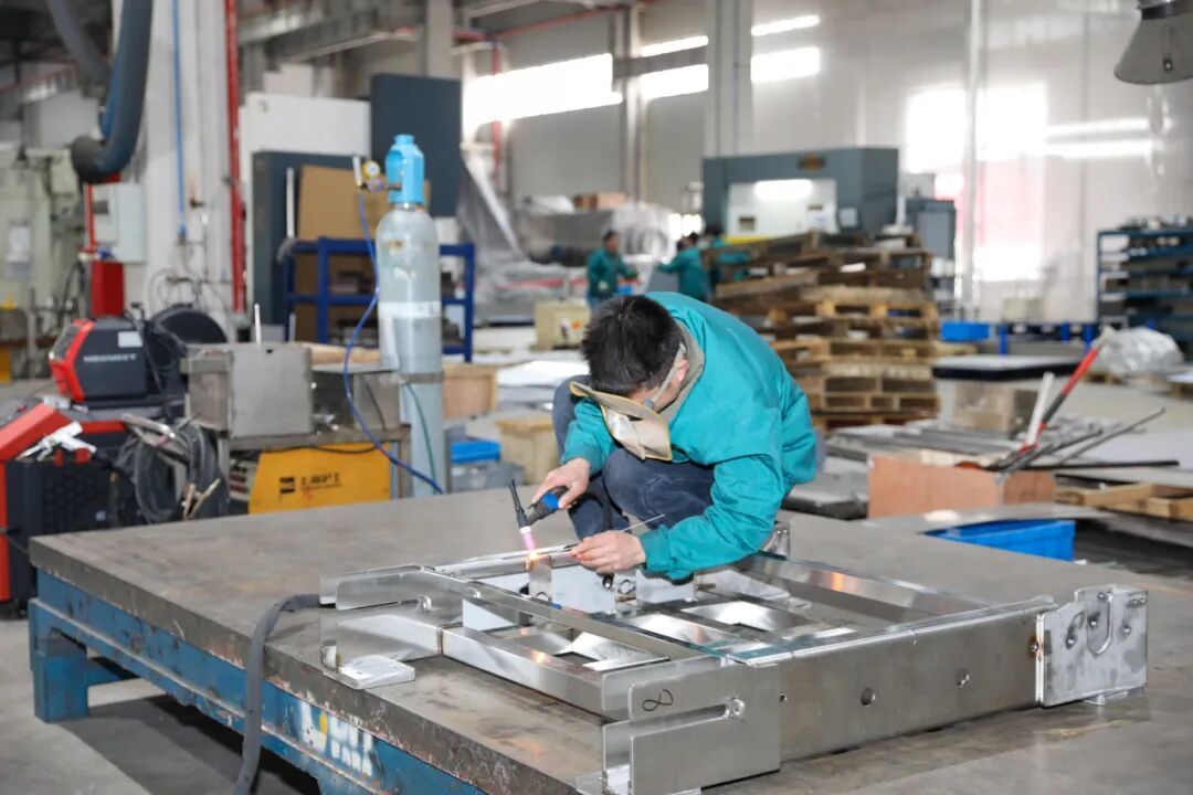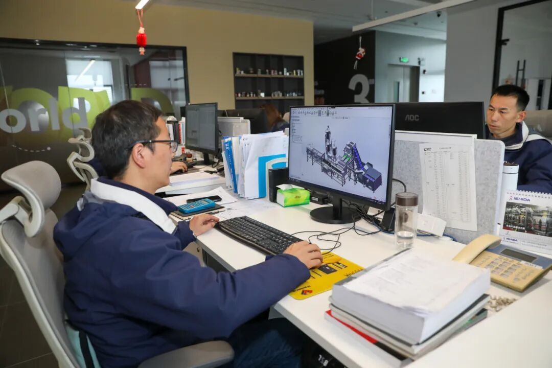 而在上海尼为智能科技有限公司设计部,设计师陈攀正和团队成员一起设计研发一款黄桃罐头全自动产线,这款将发往安徽淮北的设备,是企业今年接到的新订单。生产车间内,员工正加紧进行焊接、整机组装和调试,确保按时交付。