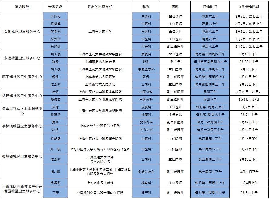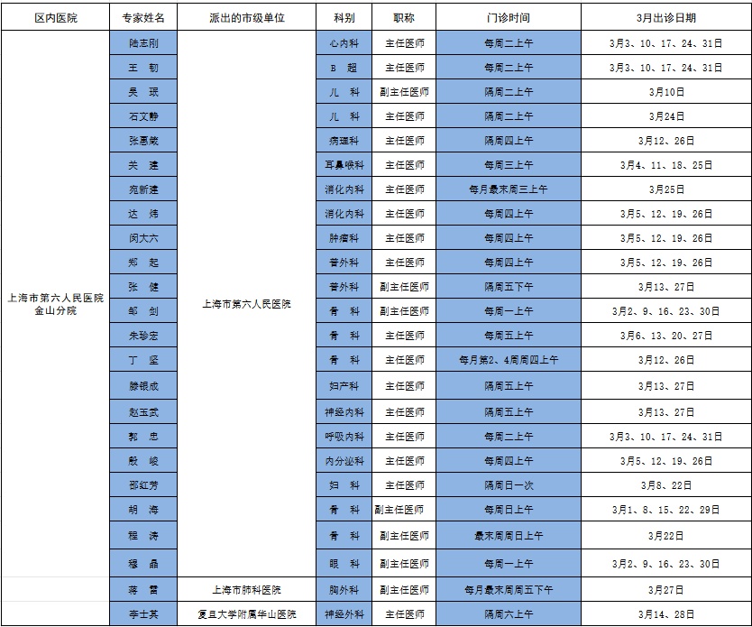 市级专家2026年3月出诊表