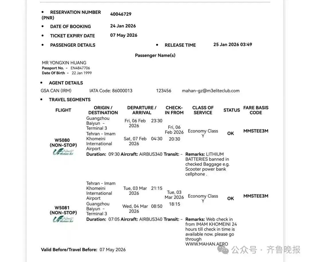 2月6日,黄勇鑫按计划飞抵伊朗德黑兰伊玛目·霍梅尼国际机场,原本计划前往伊拉克完成既定工作,3月3日搭乘航班返回广州。