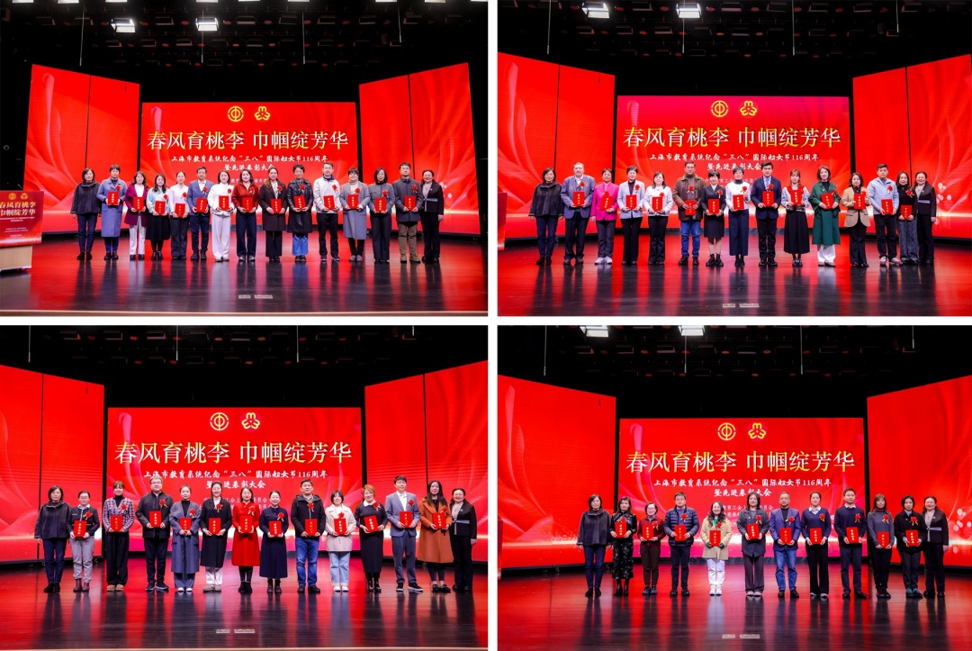 3月3日,由上海市教育工会、上海市教育系统妇工委主办的“春风育桃李 巾帼绽芳华”——上海市教育系统纪念“三八”国际妇女节116周年暨先进表彰大会举行。上海市妇联党组书记、主席张华,上海市教卫工作党委书记江帆,市教育工会主席、市教育系统妇工委主任、上海交通大学党委副书记、上海交通大学医学院党委书记张艳萍等出席会议。