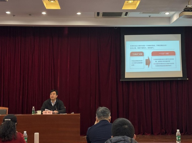 活动中,局党组书记、局长陈刚作了题为《学习贯彻党的二十届四中全会精神 奋力开创房管工作高质量发展新篇章》的专题辅导报告。报告围绕《中共中央关于制定国民经济和社会发展第十五个五年规划的建议》,深入解读了“十五五”时期的历史方位、主要目标和总体部署,结合嘉定区实际,系统阐述了推动房地产高质量发展的理论内涵、时代特征和重点任务。