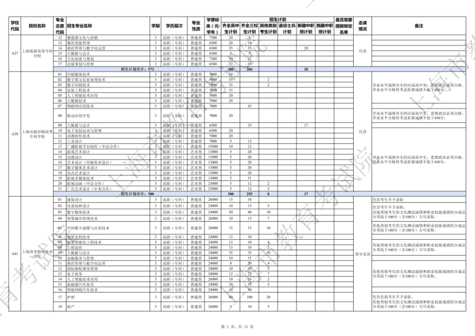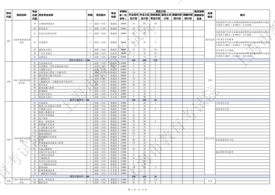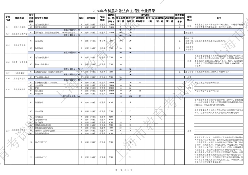 2026年专科层次依法自主招生专业目录