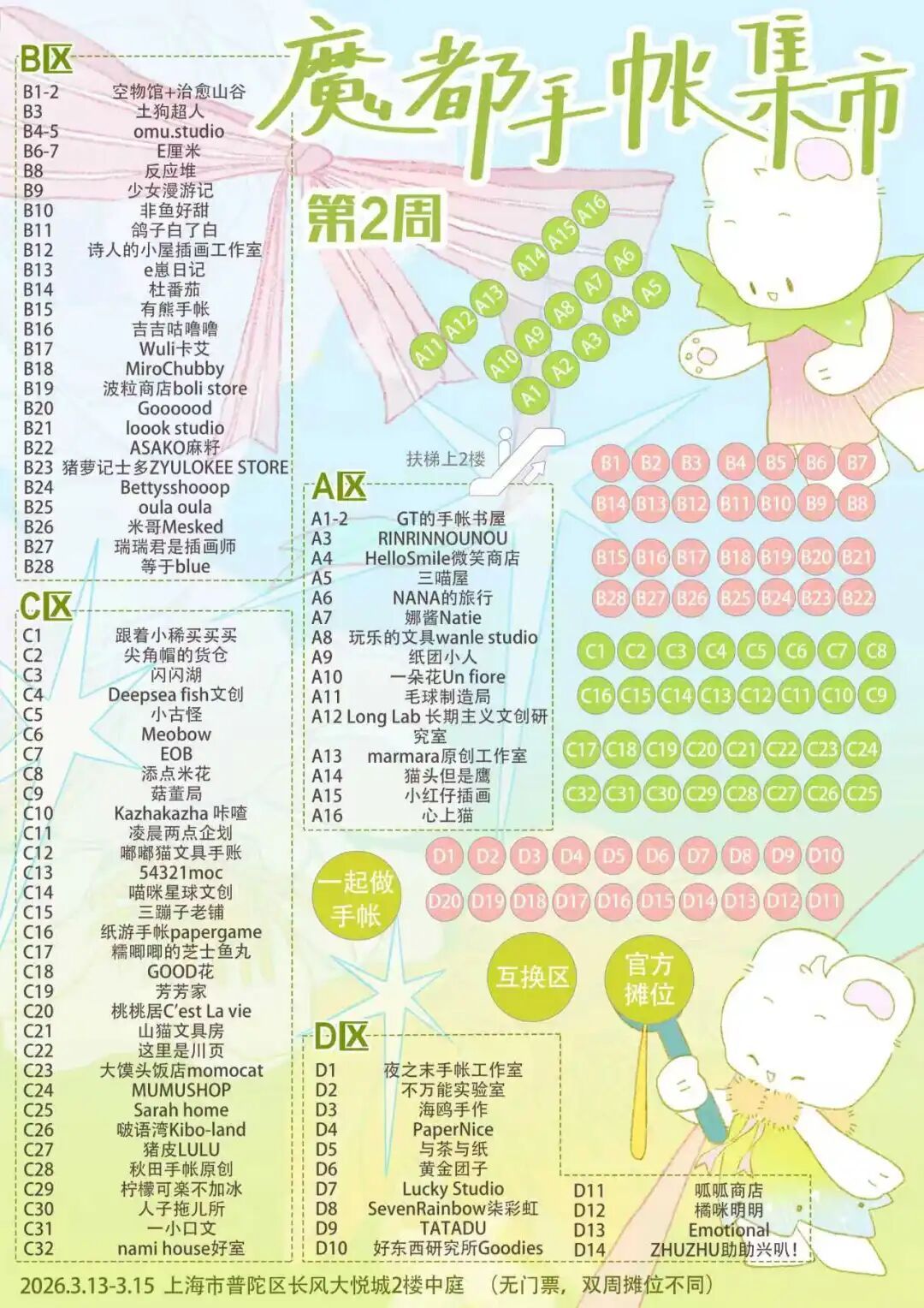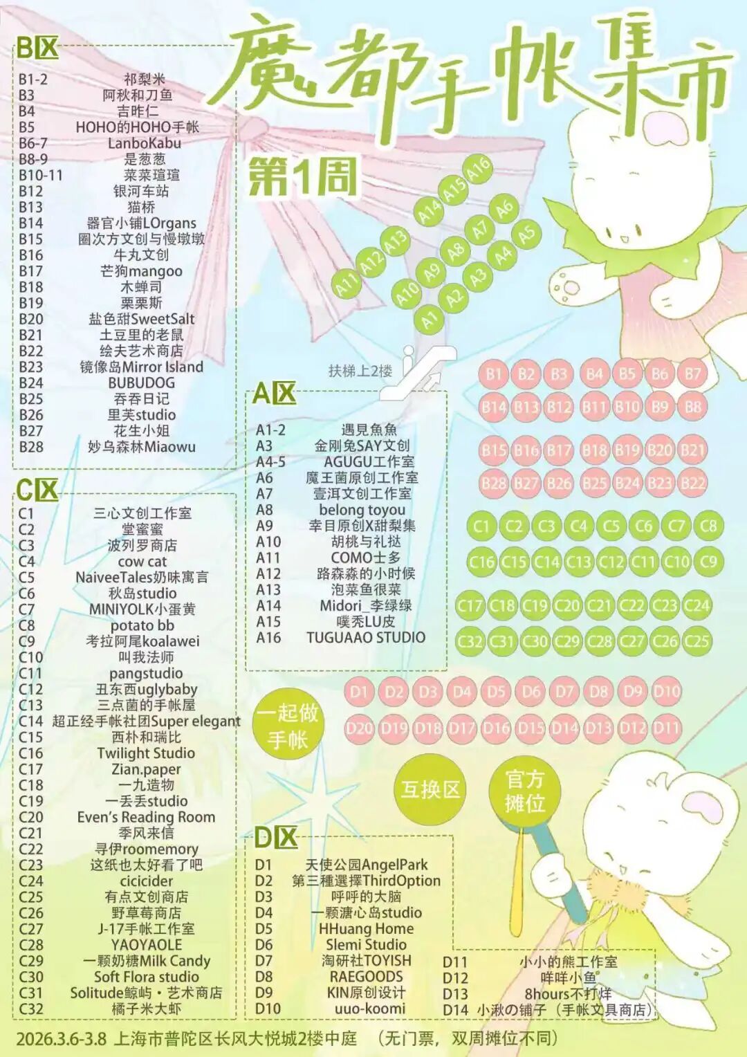 春风正好,普陀区一大波市集正在展出,速来收藏这份潮玩攻略! 魔都手账集市 魔都手账集市双周限定场重磅登陆!即日起-3月8日、3月13日-3月15日,长风大悦城双周焕新摊位阵容,超百家原创手账文创品牌齐聚,四大分区集结海量原创插画、手账素材、文创周边、手作好物,更有手账DIY体验区、好物互换区、官方摊位等多元玩法,无门票即可入场,邀你在笔墨纸间邂逅春日浪漫,解锁属于文创爱好者的专属盛会。 ⏰时间:即日起-3月8日、3月13日-3月15日 地址:普陀区大渡河路196号长风大悦城(乐高商铺前)