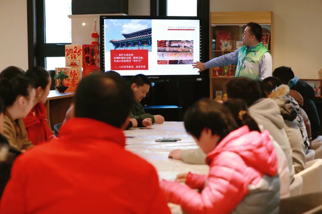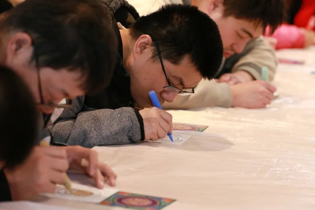在文化体验环节,志愿者们用通俗易懂的语言,为学员们讲解图书馆建筑中天花彩画所蕴含的传统文化知识,并耐心指导他们从勾勒线条到填涂色彩,一步步完成属于自己的彩画作品。现场气氛温馨融洽,学员们脸上洋溢着自信与喜悦的笑容。