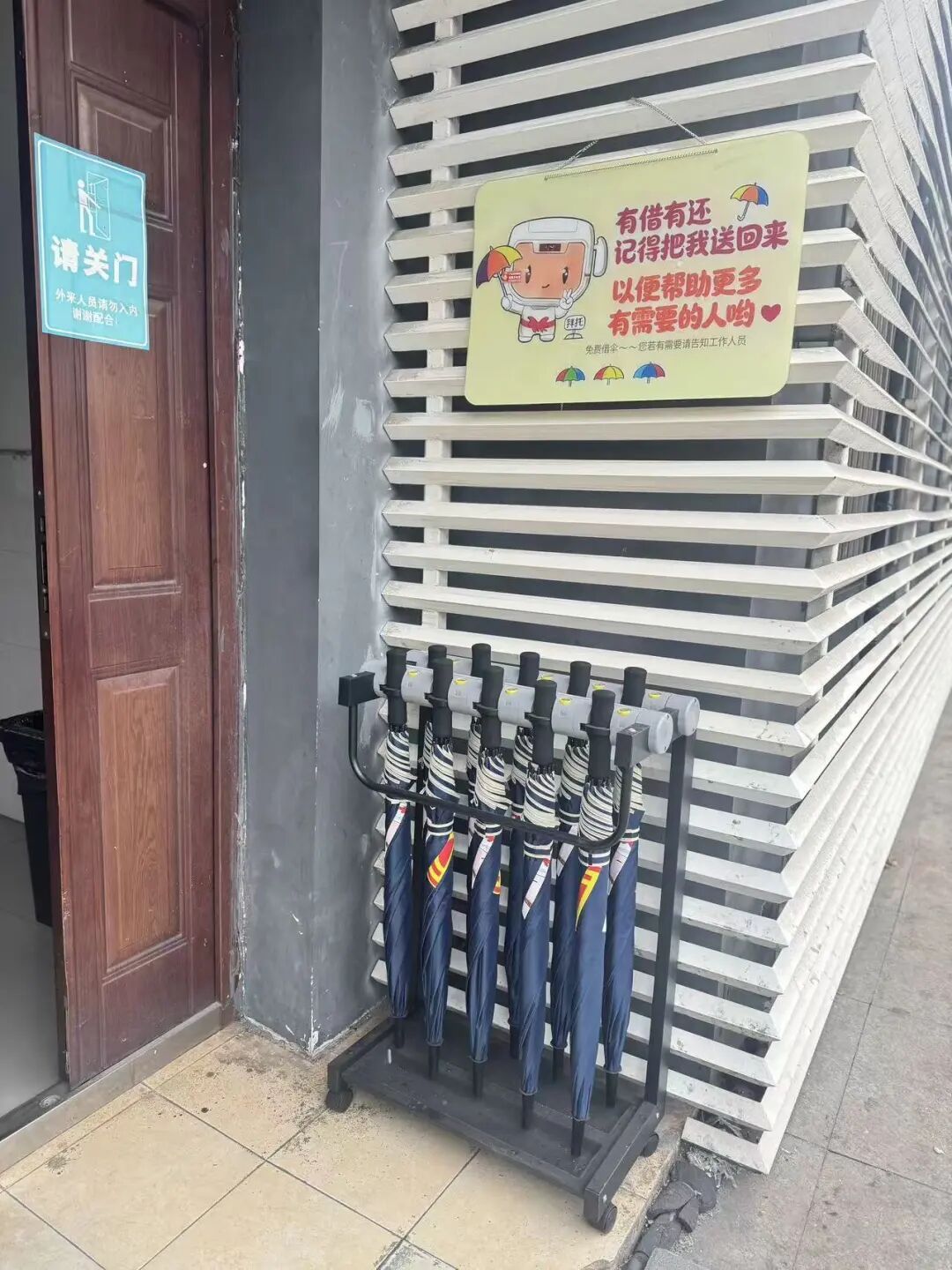 服务场景的延伸,更体现在“急人所急”的细节上。多接口充电组满足各类设备续航需求,破解出行与作业途中的充电难题;暖宝宝、雨伞、雨衣等物资为低温雨雪天气做好应急保障;针线包则解决衣物勾丝破损的小尴尬。与此同时,驿站张贴清晰的使用提示牌,明确借用流程,引导规范使用,让爱心资源在有序管理中持续发挥作用。