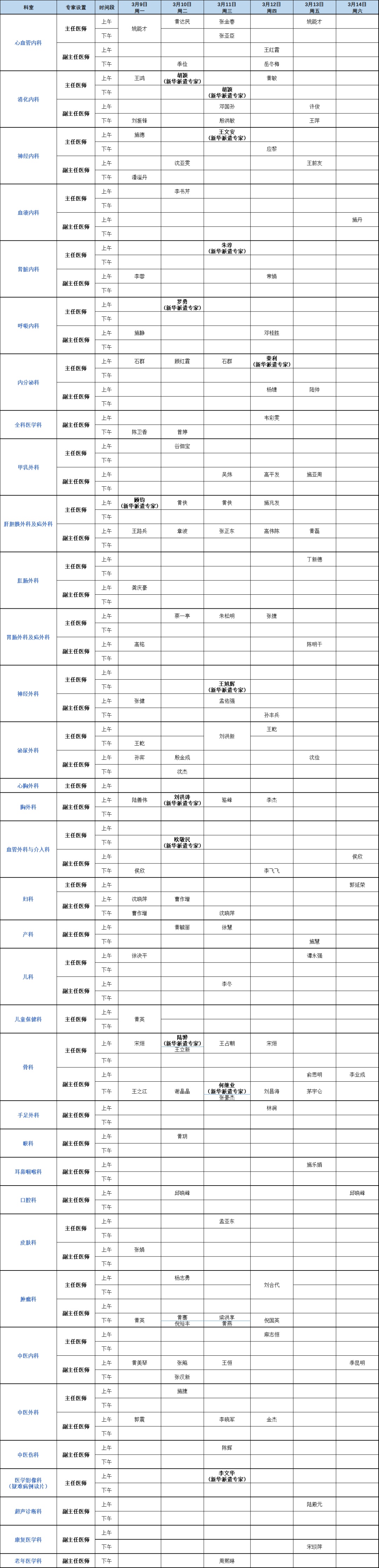 专家门诊安排(点击图片可放大)