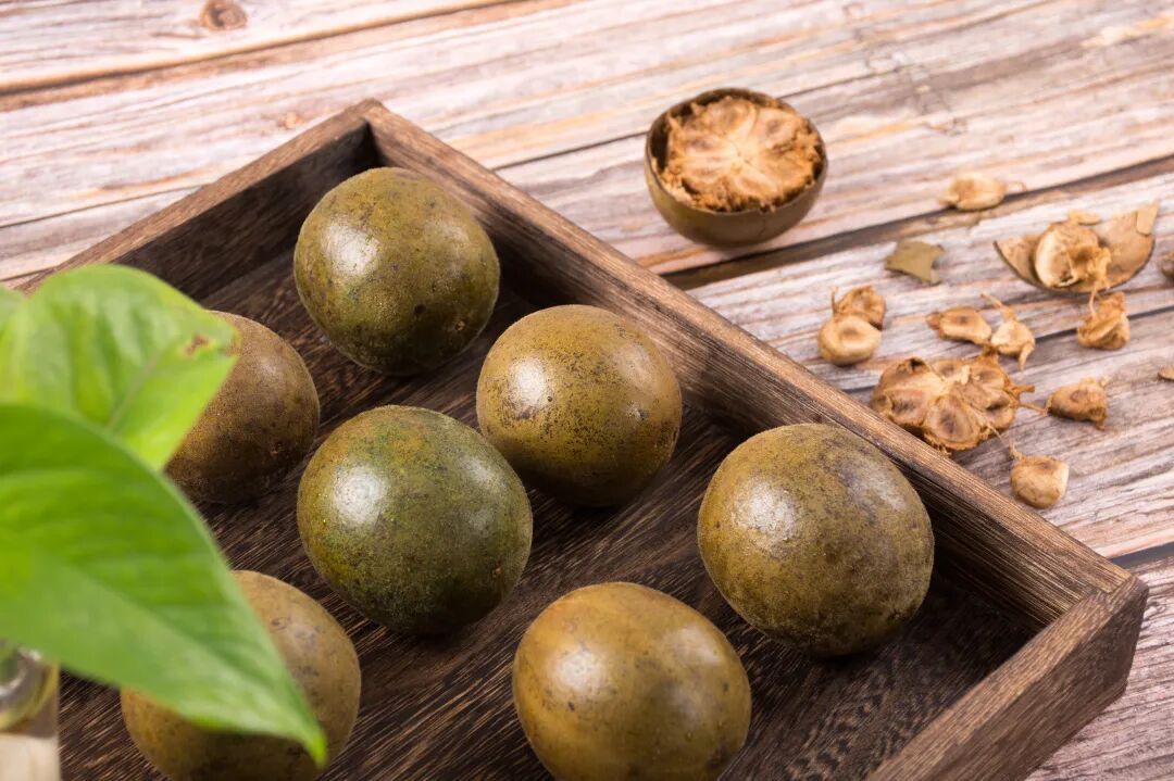 罗汉果是葫芦科植物罗汉果的干燥果实。秋季果实由嫩绿色变深绿色时采收,晾数天后,低温干燥。