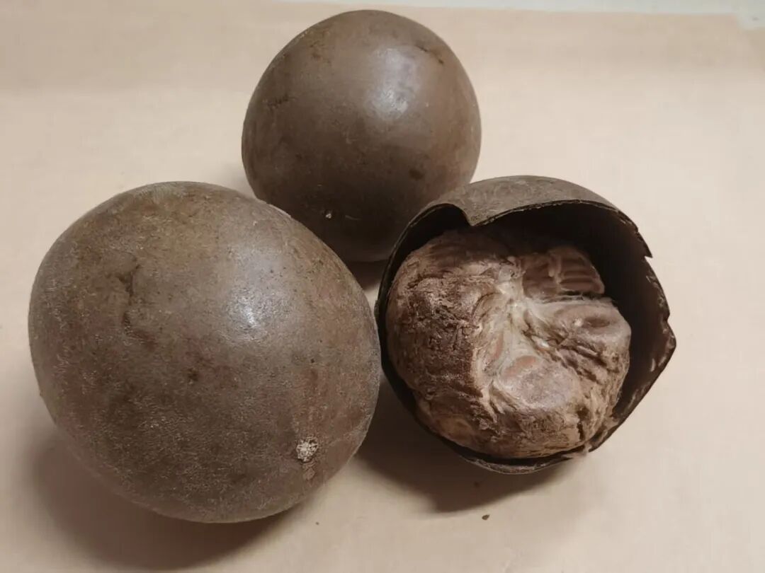果实经低温干燥,表面褐色,质脆,果皮薄,果瓤海绵状,浅棕色。