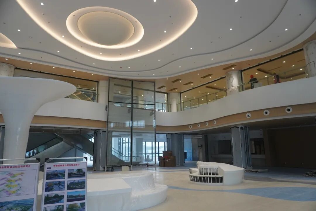 在施工现场,项目效果图上最抓眼球的“瑞金之眼”已基本完成。据了解,目前项目外立面工程总体完成98%,机电工程总体完成95%,净化、屏蔽、实验室、医气专项工程完成90%。装饰装修工程完成95%,室外道路、园林小品、铺装完成80%,绿化完成30%。此外,工程共设计了900余个停车位。