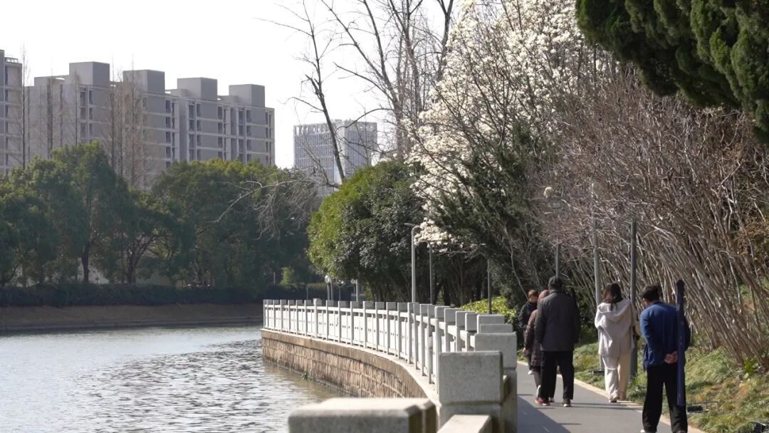 3月9日上午,记者来到嘉定环城河步道紫藤公园段,便被眼前成片的白玉兰吸引。抬眼望去,千花万蕊如云般交织,在阳光映照下影影绰绰,分外动人。