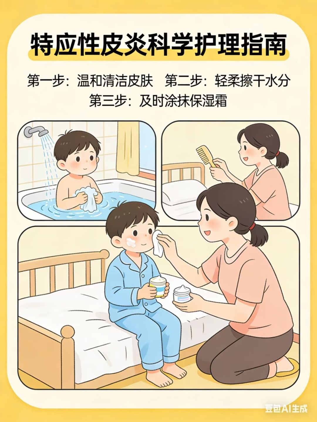 特应性皮炎日常护理(图片由AI生成)