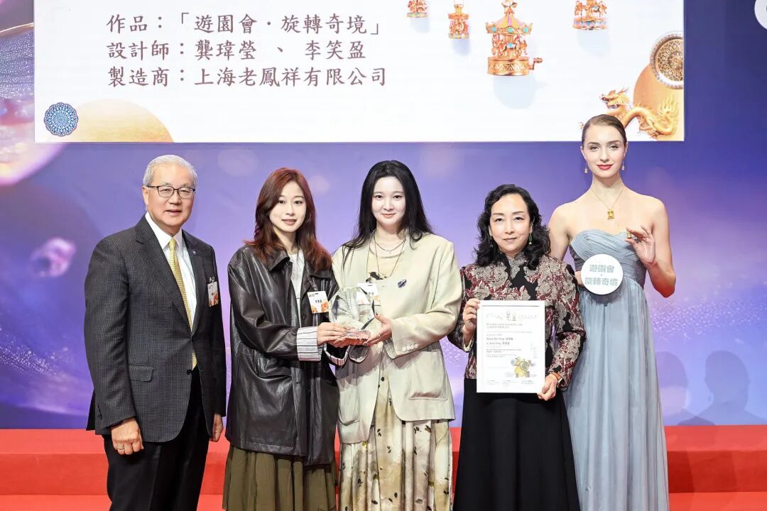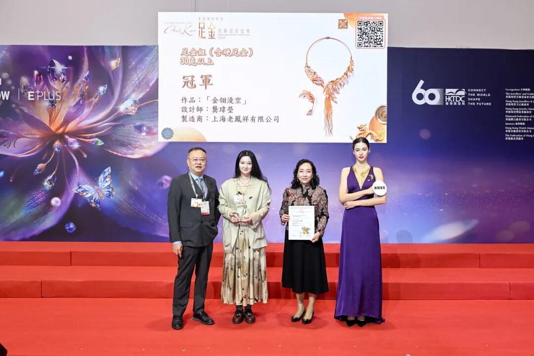 老凤祥设计中心设计师龚玮莹作品《金翎凌空》,及其与李笑盈联合创作的《游园会·旋转奇境》,包揽2026香港国际时尚足金首饰设计比赛足金组(含硬足金)30克以上、30克以下两项冠军,再现百年品牌薪火相传的设计力量。