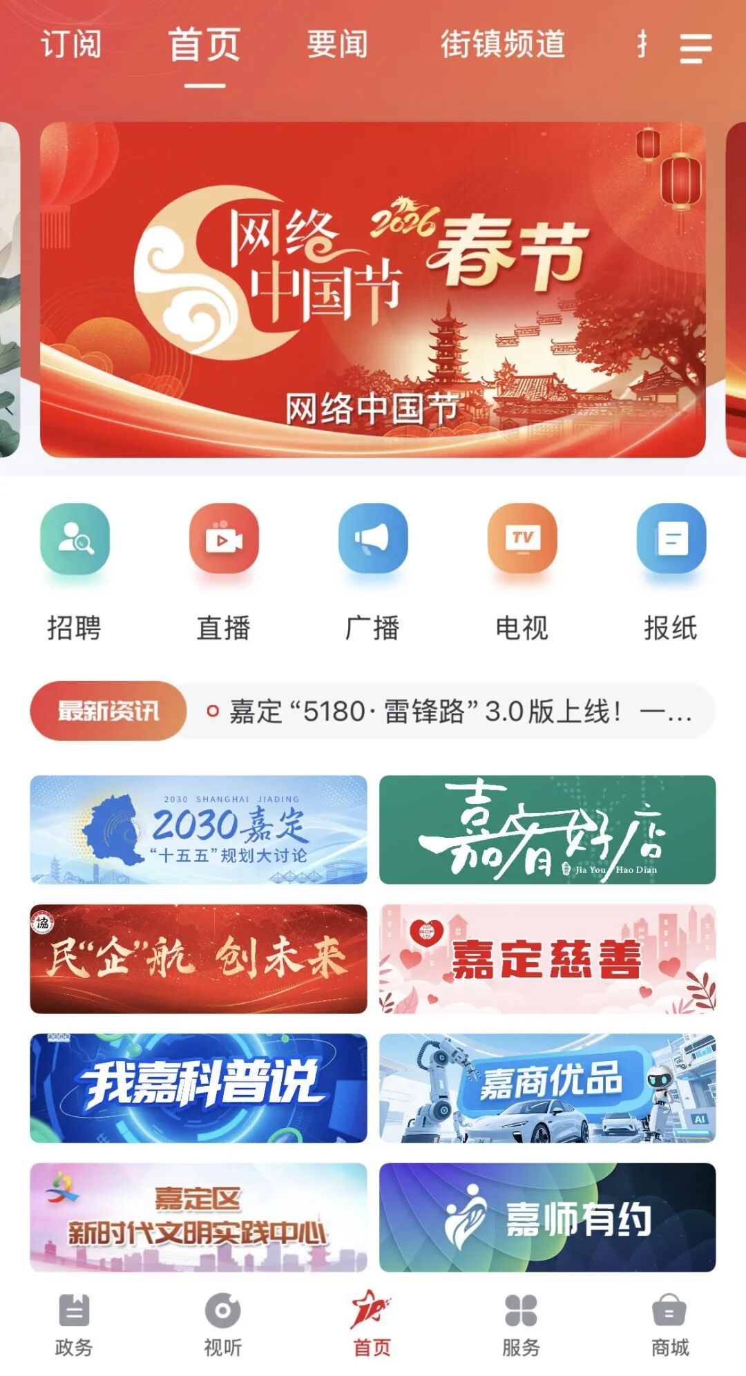 在“上海嘉定”APP首页中,点击“直播”按钮,可以回看“健康有道”往期节目。