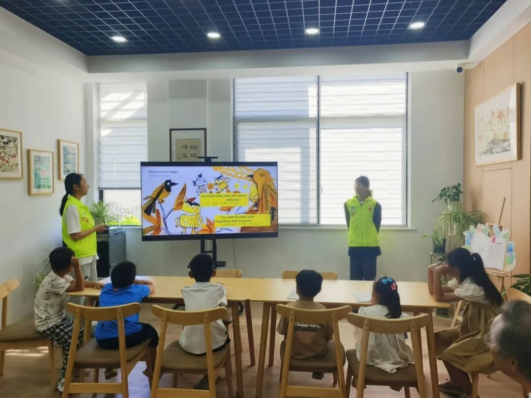 每逢传统节日或寒暑假,海墅社区的活动室里总是格外热闹。上海师范大学外国语学院的大学生志愿者会如期而至,带着社区的孩子们读英语绘本、做互动游戏,笑声不断。这是海墅社区“青色智汇队”参与基层治理的一个缩影。社区积极对接高校资源,组建“紫藤校地融合创新联盟”(奉贤区校地联合社会工作研究实践基地、上海应用技术大学智能技术学部志愿者教育实践基地)。一批批大学生志愿者加入“青色智汇队”,为社区治理注入青春动能。