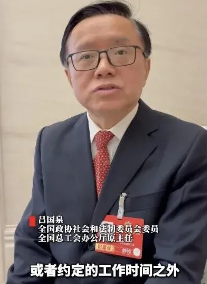 全国政协委员、全国总工会办公厅原主任吕国泉连续3年关注“隐形加班”问题,今年他继续推动相关立法。他在接受采访时表示,建议依法确立劳动者离线休息权,明确下班后有权拒回工作消息。(更多详情,戳我了解→)