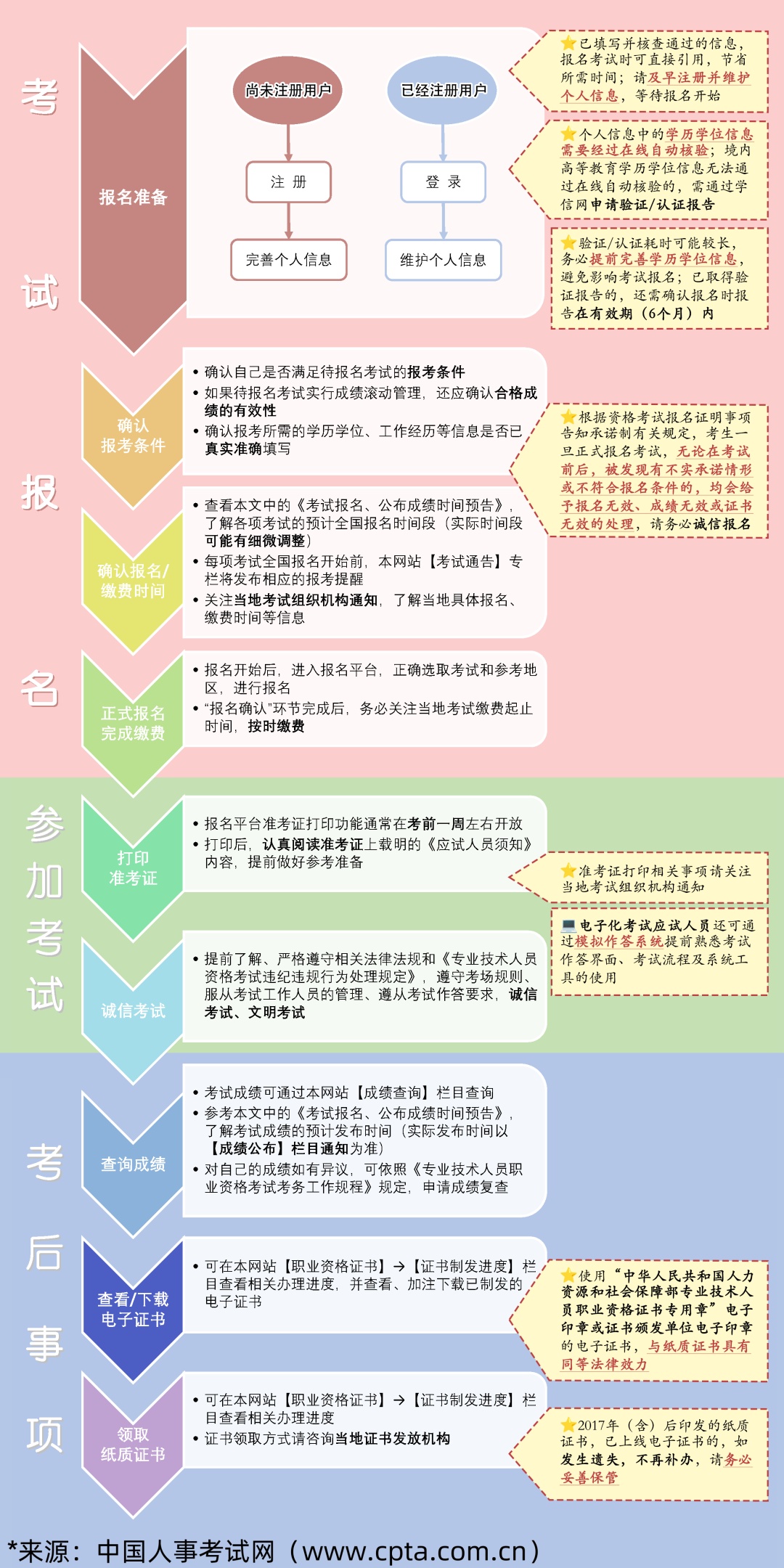 3、国家职业资格考试全面推行考试报名证明事项告知承诺制,强化事中事后监管。请广大报考人员诚信报名、诚信考试,对提供虚假证明材料、虚假承诺等情形和考试作弊等违纪违规行为将依据有关规定予以严肃处理。