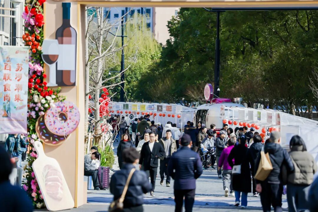 在百联苏河片区的整体规划中,这种向街道和公众退让的设计正在成为共识。市民可以沿着水岸悠闲漫步,随时步入沿线建筑内部,体验多元餐饮、探访创意工作室或是参与各类文化交流。建筑内外空间的自然衔接,不仅构筑起可停留的“城市客厅”,更将沿河漫步的客流有效转化为实实在在的消费活力。