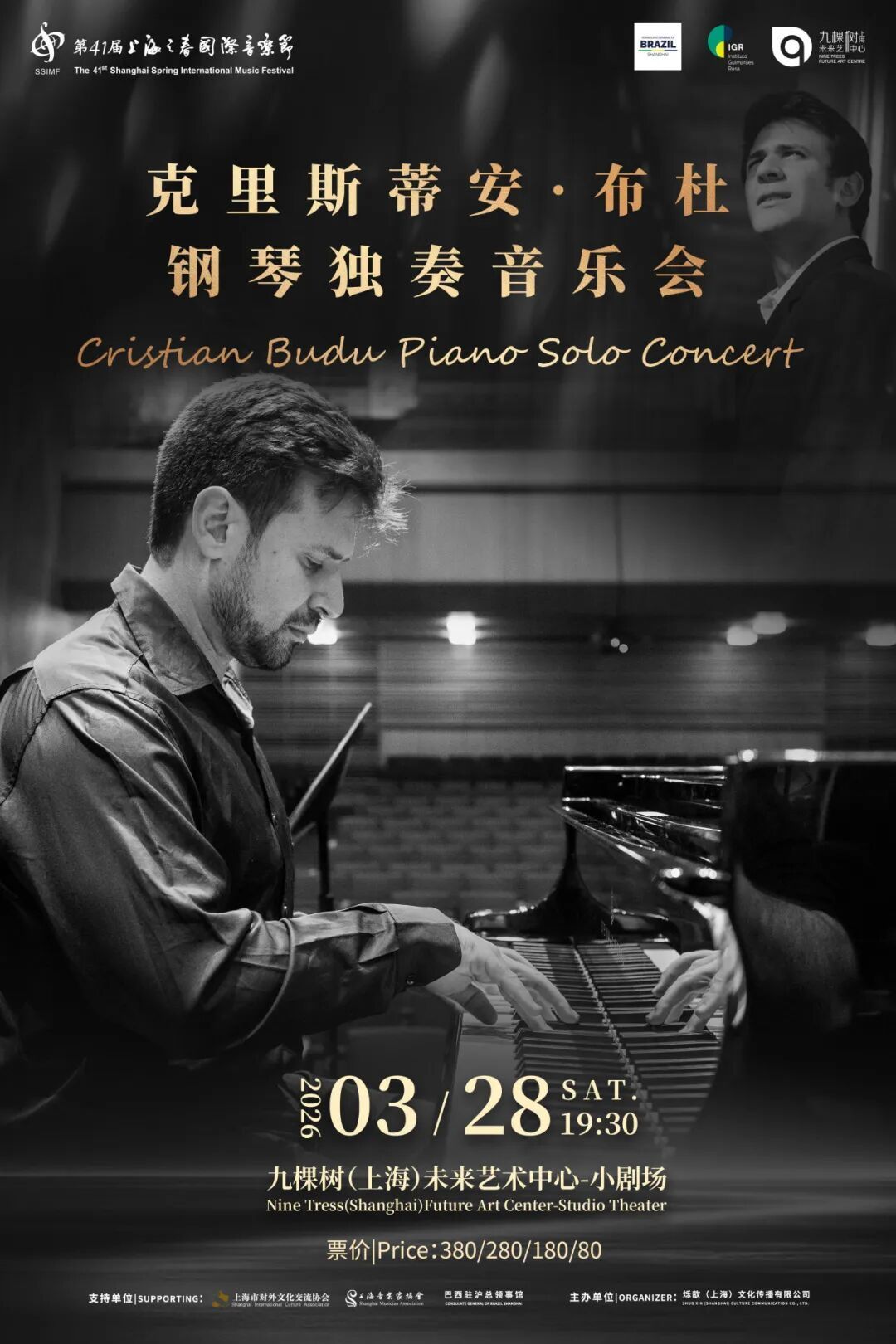 作为“2026中巴文化年”特别企划的一部分,3月28日,克里斯蒂安·布杜(Cristian Budu)钢琴独奏音乐会得到了巴西驻上海总领事馆与巴西外交部吉马莱斯·罗萨学院的特别支持。